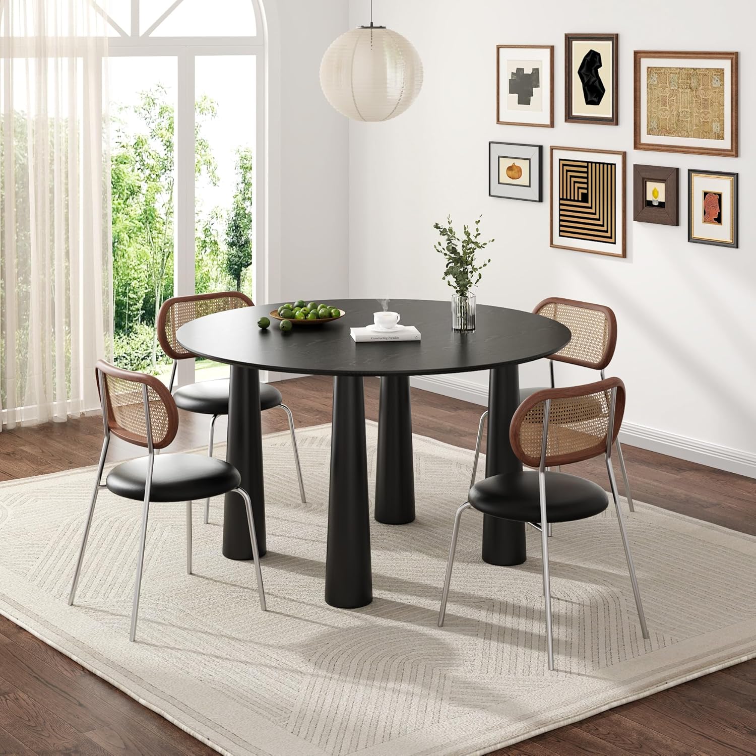 Casaphoria 52" Round Dining Table, Kitchen Table for 6 with Arc-Shaped Edge Top and Cylindrical Legs, Easy Assembly for Living Room, Dining Room, Black