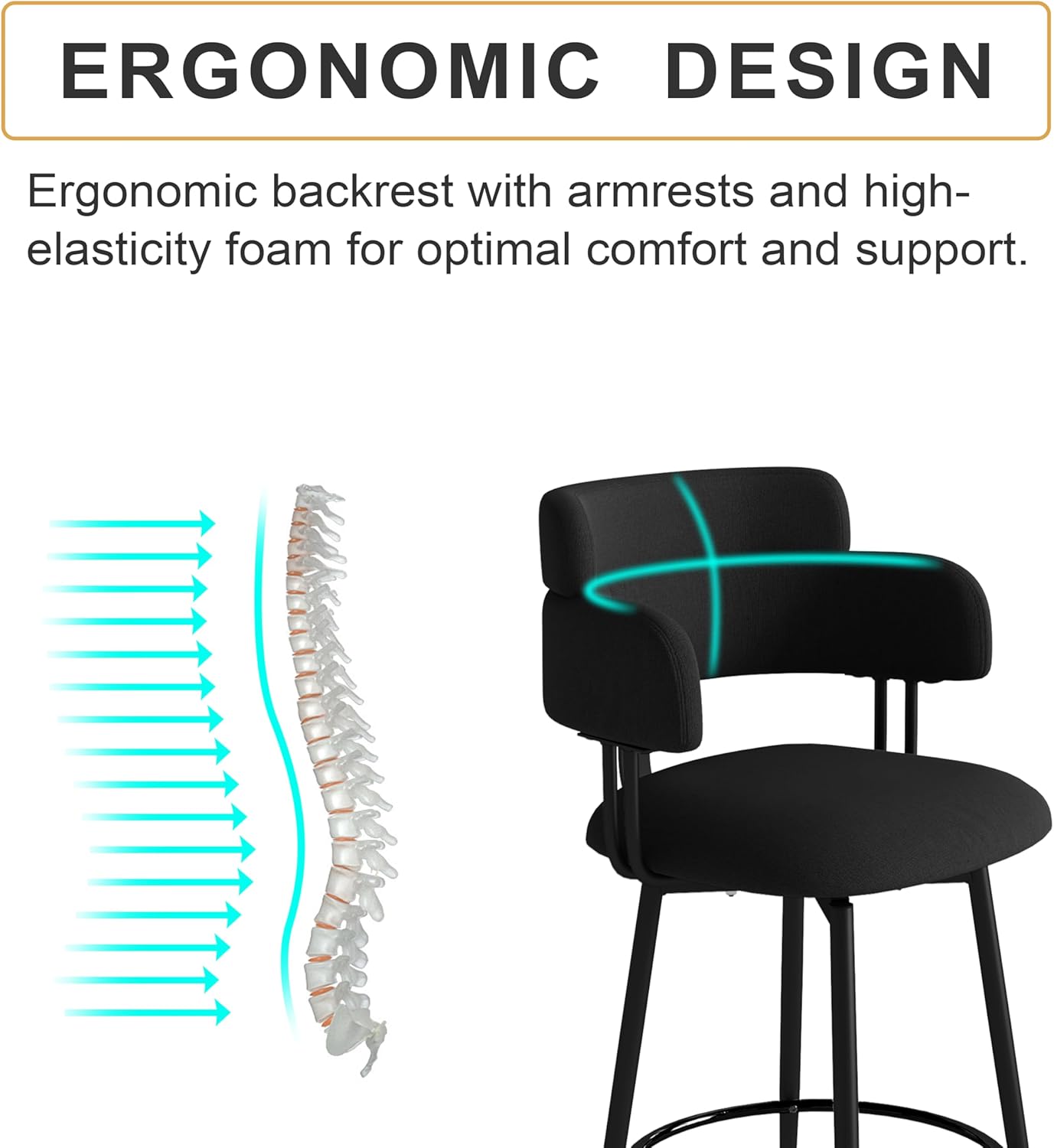 - Ergonomic and Stylish Design: Featuring a stylish two-tier backrest and circular armrests, these kitchen counter stools are designed for relaxed leaning and easy leg support on the durable footrest. The addition of a supportive backrest ensures a more comfortable seating experience, making them perfect for everyday use in your kitchen or bar area.