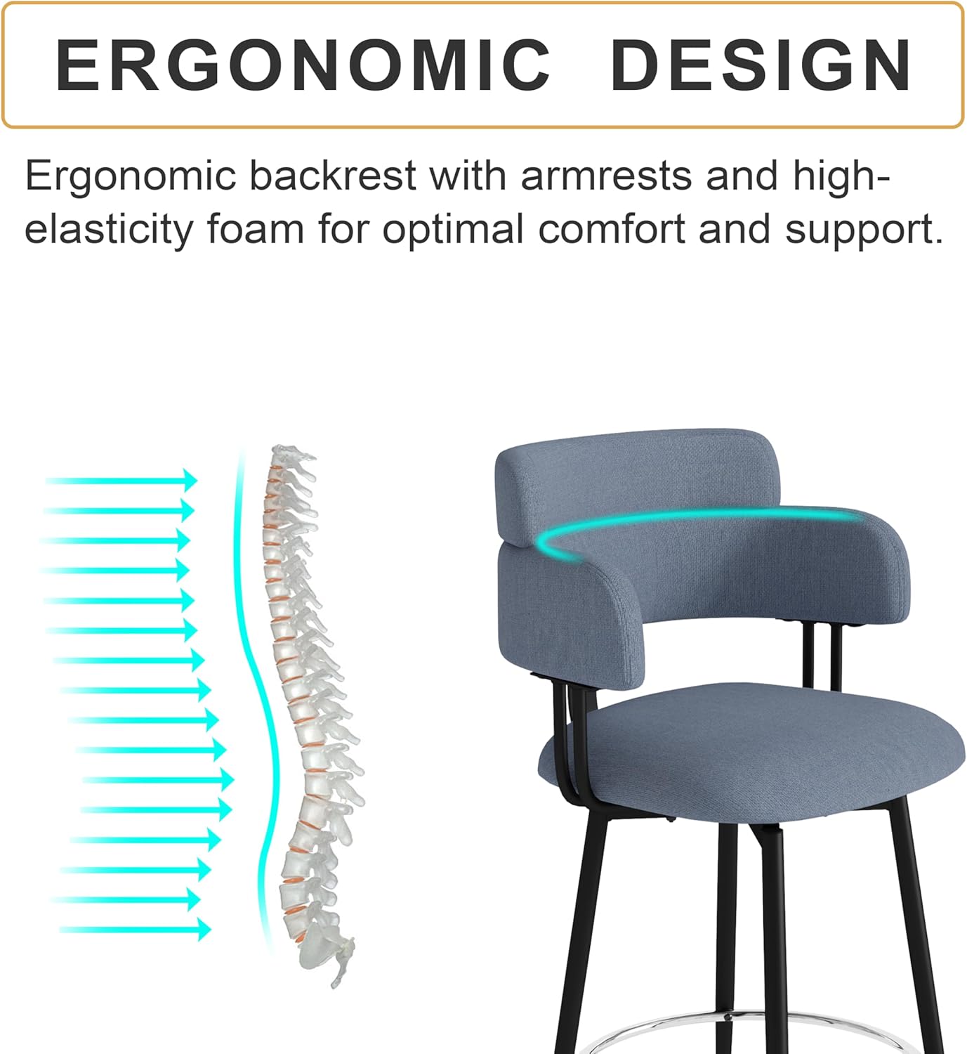 - Ergonomic and Stylish Design: Featuring a stylish two-tier backrest and circular armrests, these kitchen counter stools are designed for relaxed leaning and easy leg support on the durable footrest. The addition of a supportive backrest ensures a more comfortable seating experience, making them perfect for everyday use in your kitchen or bar area.