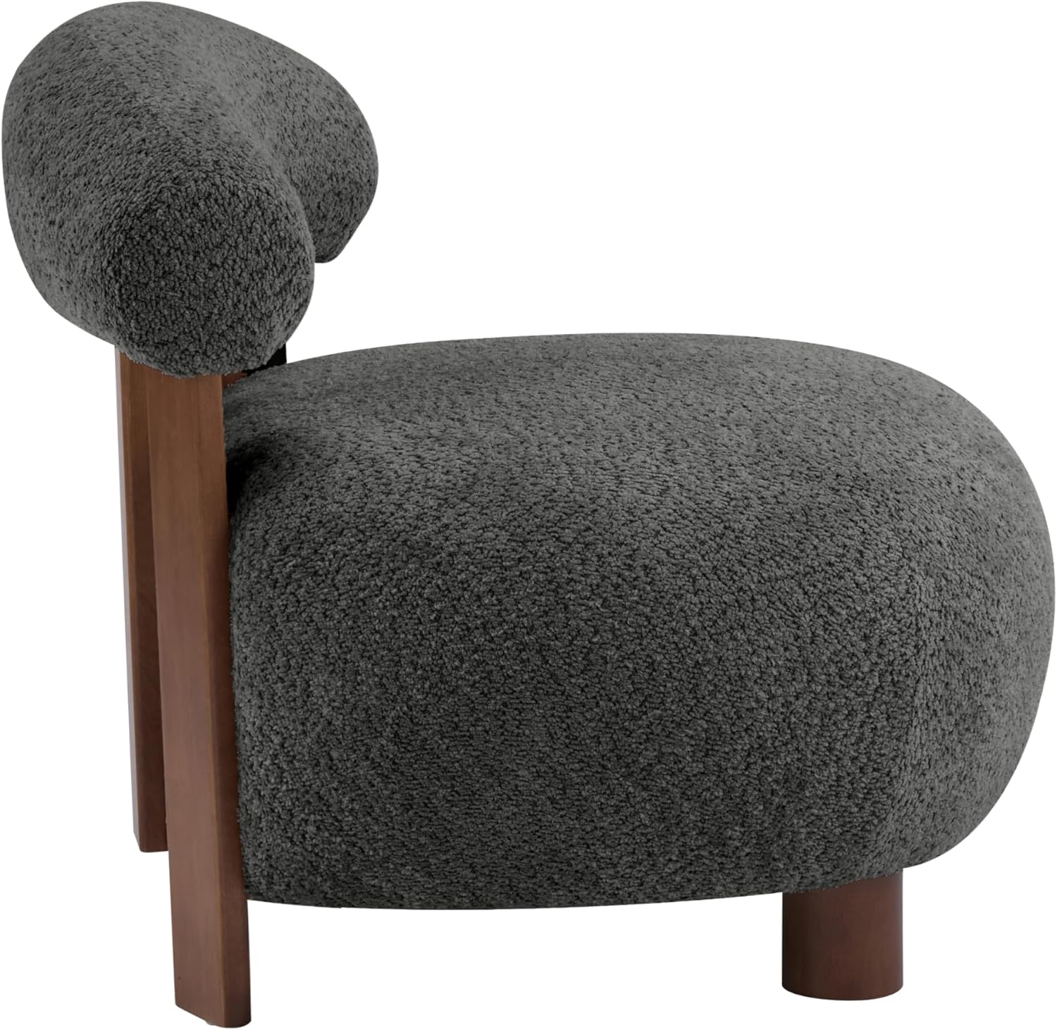Christopher Knight Home Elvina Boucle Fabric Accent Chair, Solid Wood Single Lounge Sofa, Bedroom Comfy Reading Chair, for Modern Minimalist Style Living Room/Home Office, Dark Gray