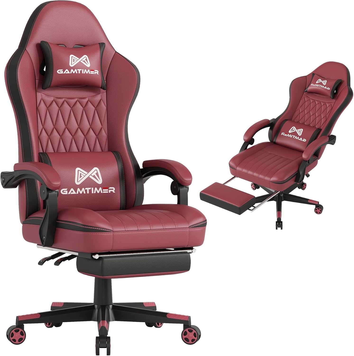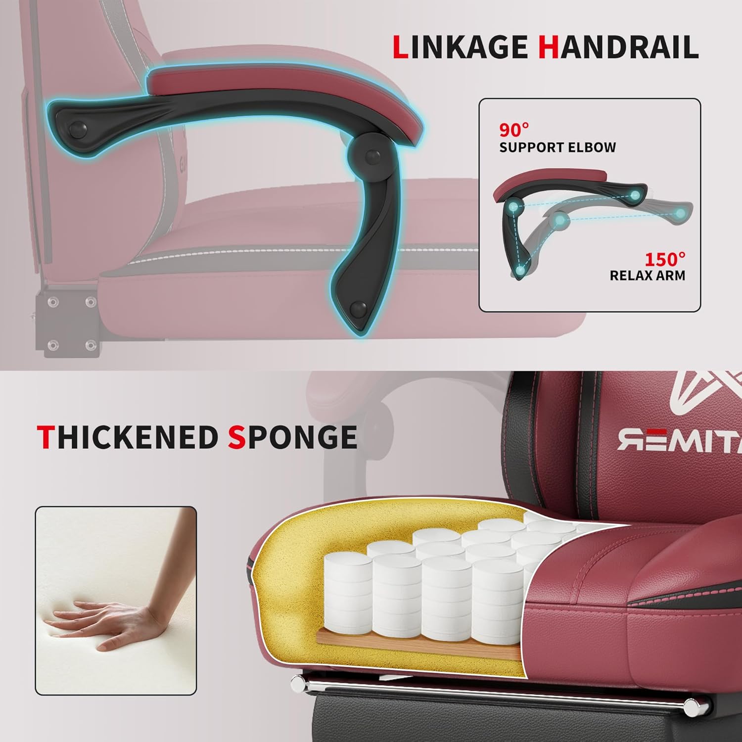 - πππππ-ππππΎπππππΌπ - 360Β° swivelling, backrest can be reclined between 90Β° - 150Β°, suitable for work, play, reading or napping, with retractable sleeping footrest. The padded armrests retract when the seat is reclined to give you a comfortable sleeping position. It also comes with an adjustable pillow and lumbar support that protects your neck and spine, helping to relieve pressure on your neck and back.