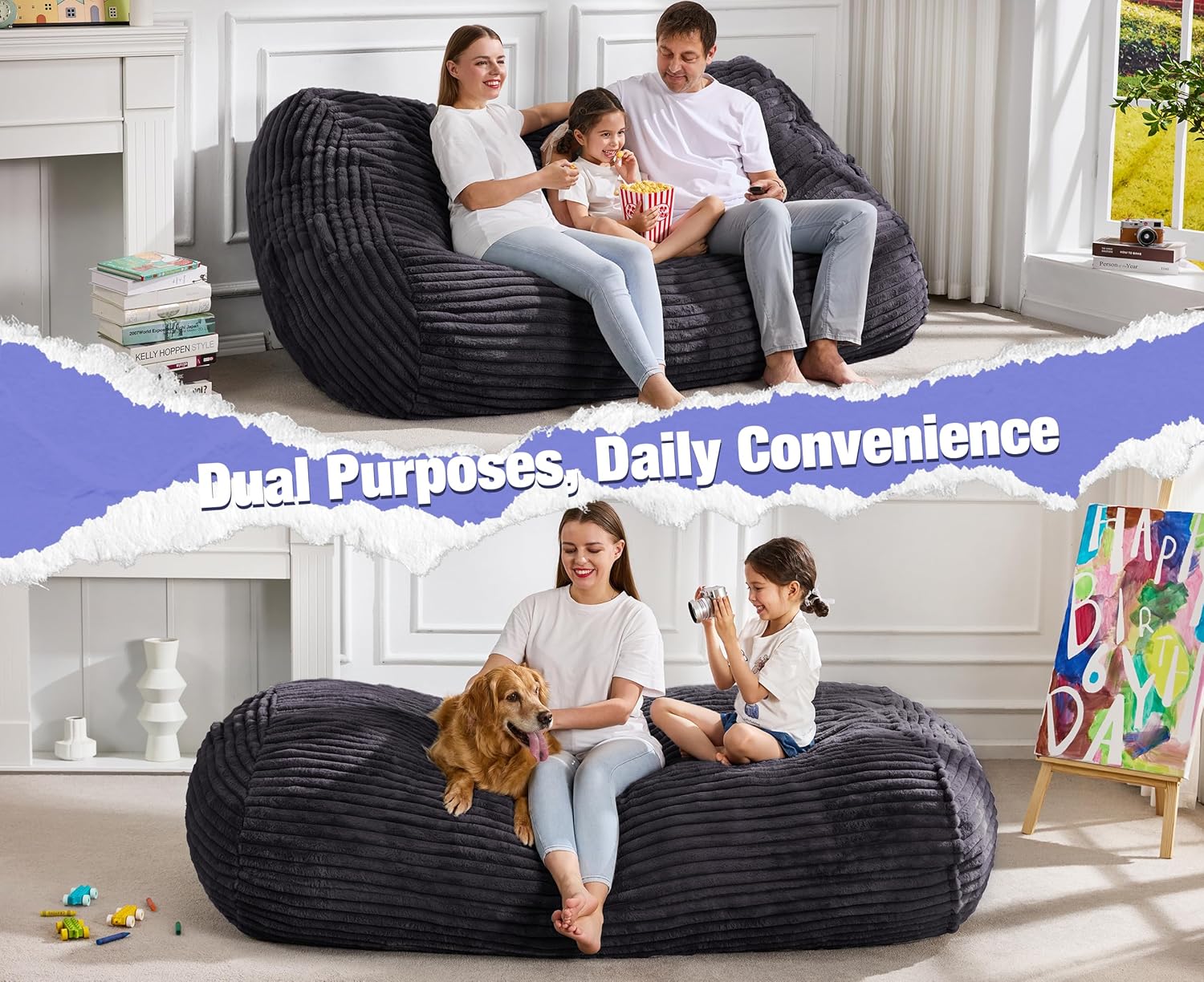 - Comfortable Fabric: Big bean bag chair for adults is made of stripe fabric that is soft and skin-friendly. The cover is removable and can be machine washed for easy cleaning. Once it's washed, the 6ft bean bag chair will revitalized, looking and feeling just like new again!