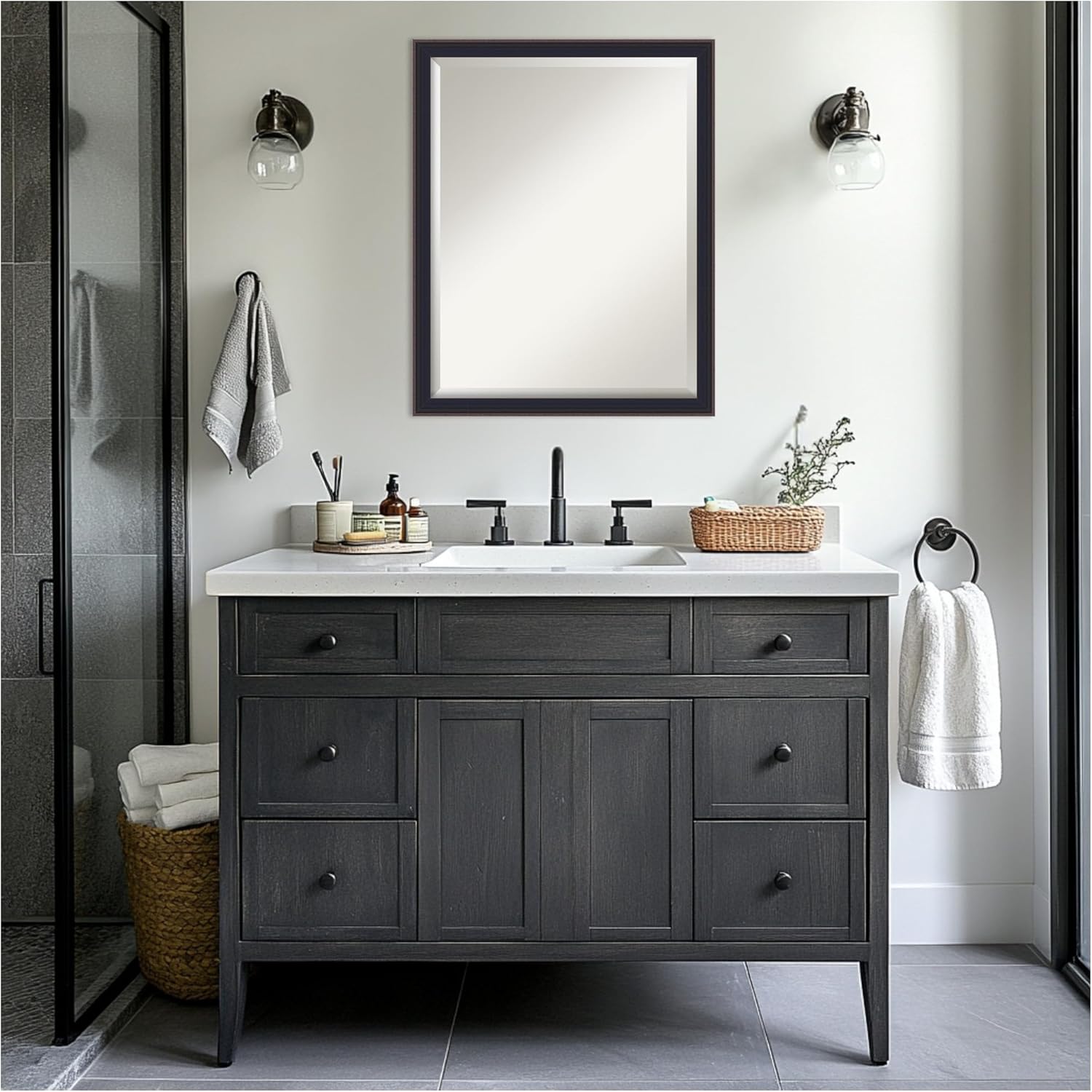 Amanti Art Black Bathroom Mirror for Over Sink, 25x31 Havana Black Bronze Rectangle Vanity Mirror, Large Casual Frame, Hangs Horizonally and Vertically, Bathroom Wall Decor, Beveled Edge