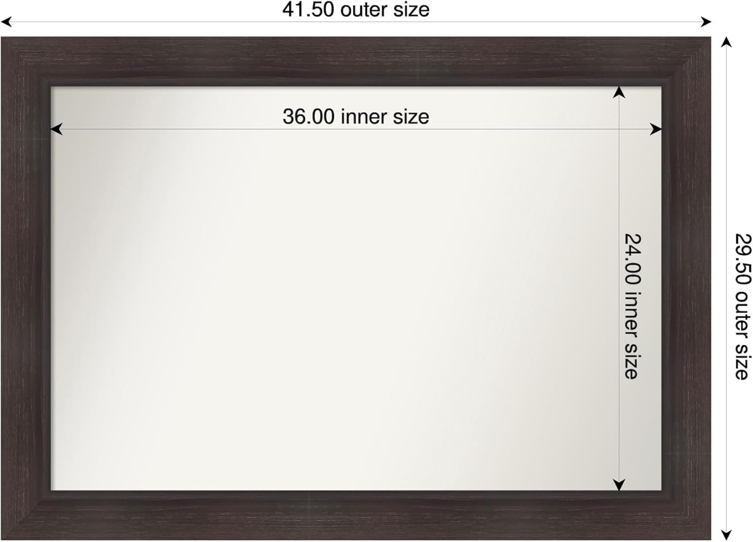 - MIRROR DETAILS: This mirror features premium glass for a clear, undistorted image and has a non-beveled surface to maximize the viewing area. The overall size of this bathroom mirror measures exactly 41.5 x 29.5 inches, including the frame. Its reflective area measures 36 x 24 inches.