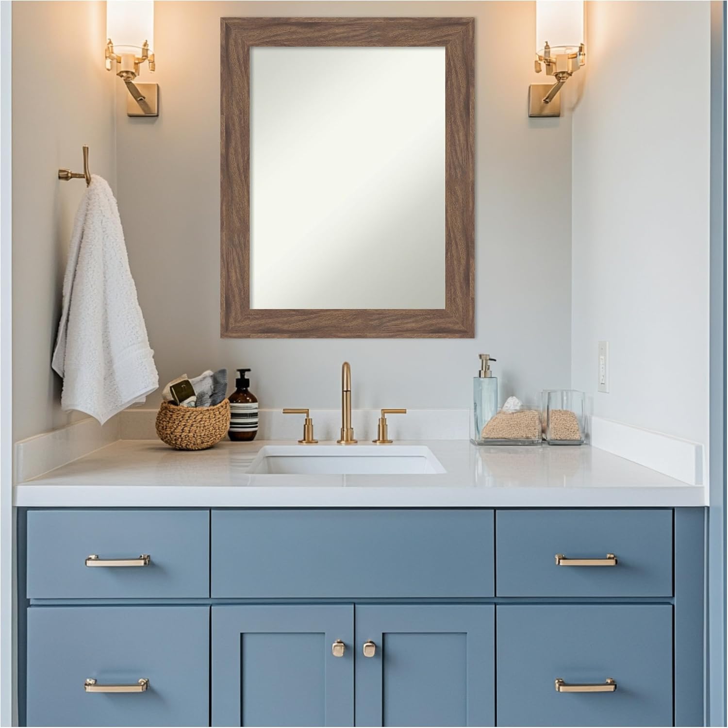 Amanti Art Brown Bathroom Mirror for Over Sink, 29x23 Pia Medium Brown Rectangle Vanity Mirror, Medium Casual Frame, Hangs Horizonally and Vertically, Bathroom Wall Decor, Non-Beveled Edge