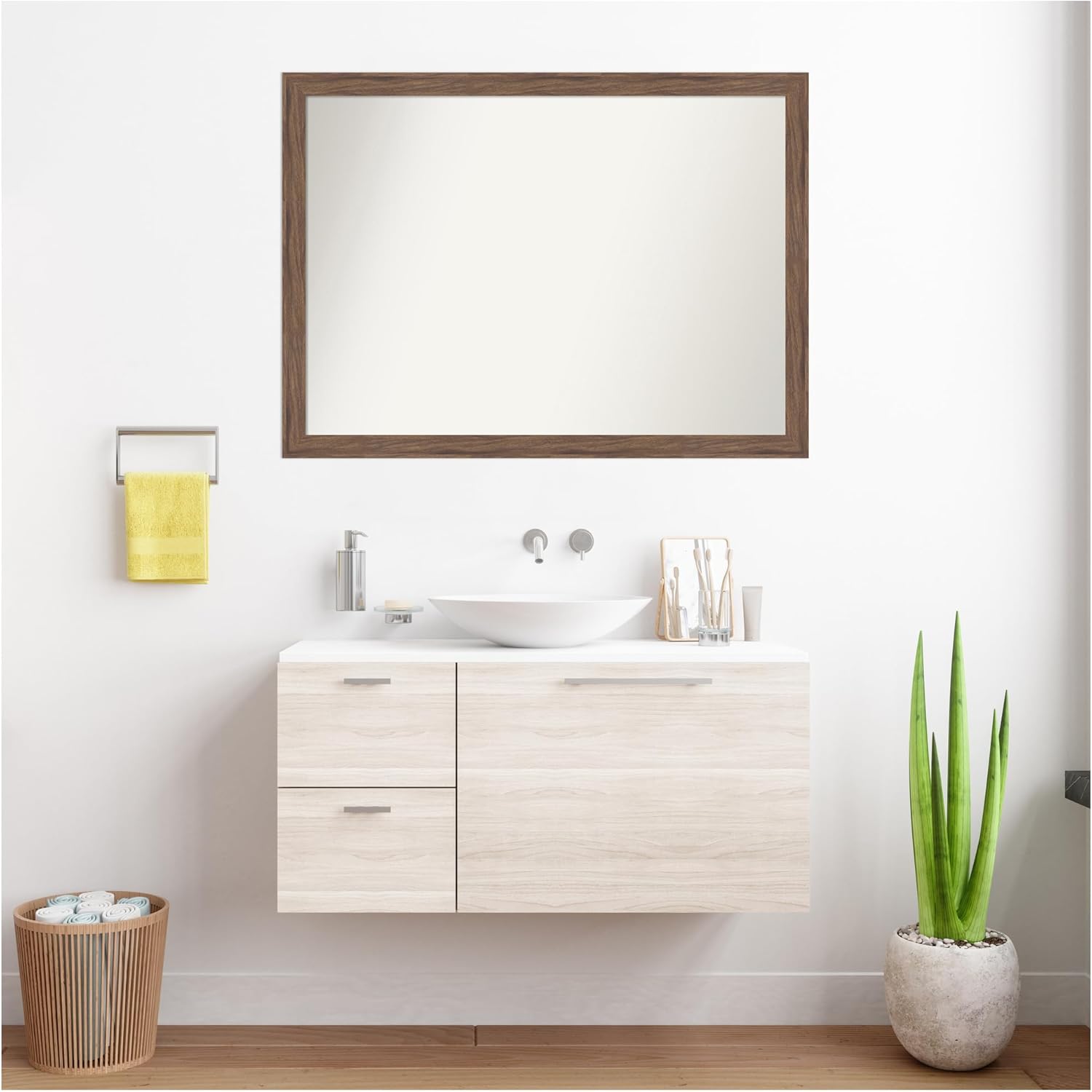 Amanti Art Brown Bathroom Mirror for Over Sink, 30x41 Pia Medium Brown Narrow Rectangle Vanity Mirror, X-Large Casual Frame, Hangs Horizonally and Vertically, Bathroom Wall Decor, Non-Beveled Edge