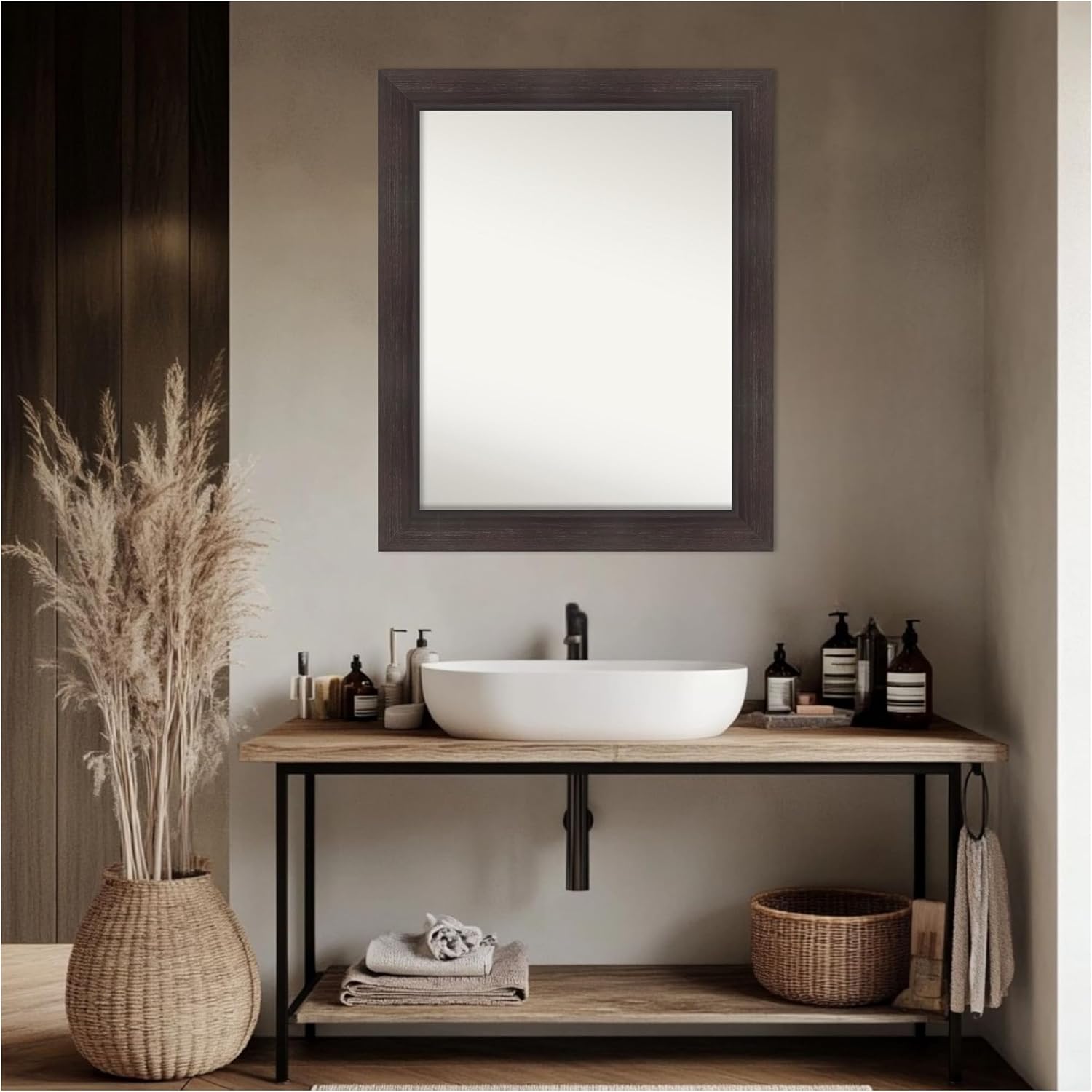 Amanti Art Brown Bathroom Mirror for Over Sink, 28x34 Sloped Espresso Rectangle Vanity Mirror, Large Modern Contemporary Frame, Hangs Horizonally and Vertically, Bathroom Wall Decor, Non-Beveled Edge
