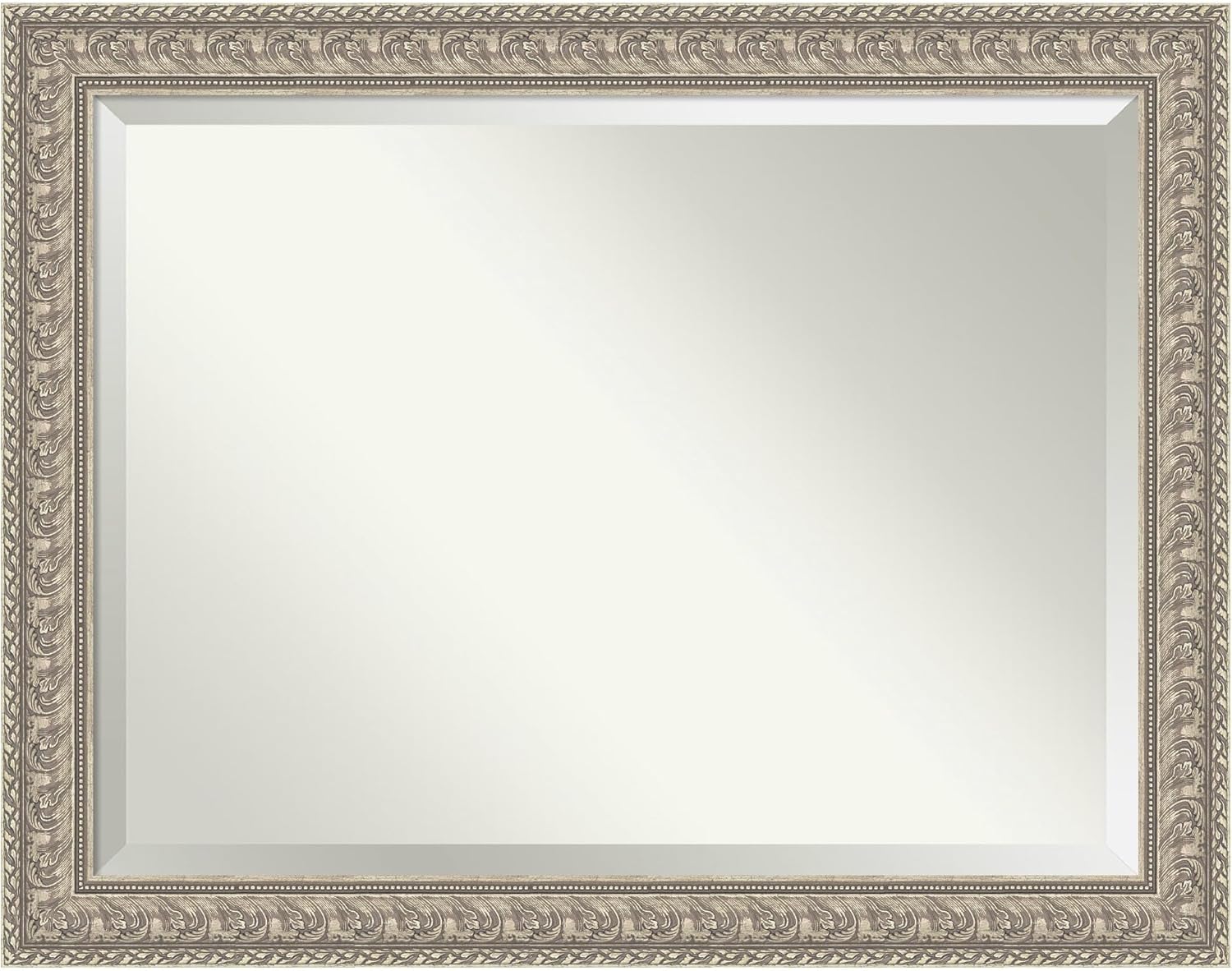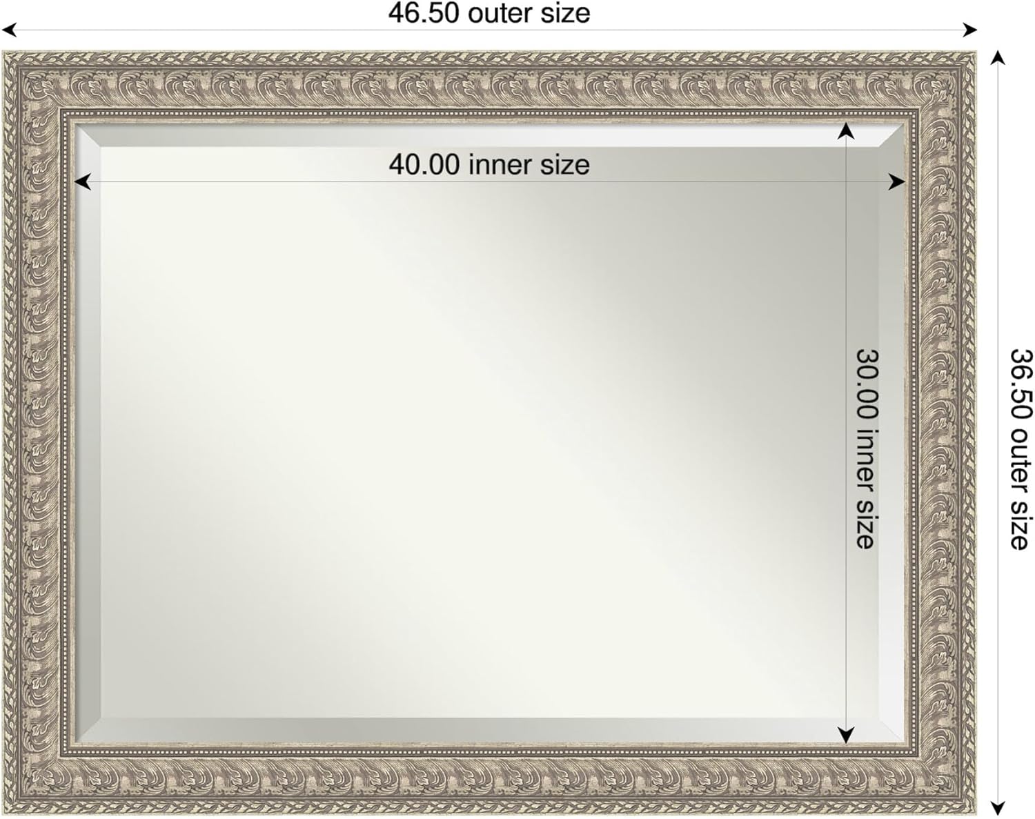 Amanti Art Silver Bathroom Mirror for Over Sink, 37x47 Sydney Silver Rectangle Vanity Mirror, X-Large Traditional Frame, Hangs Horizonally and Vertically, Bathroom Wall Decor, Beveled Edge