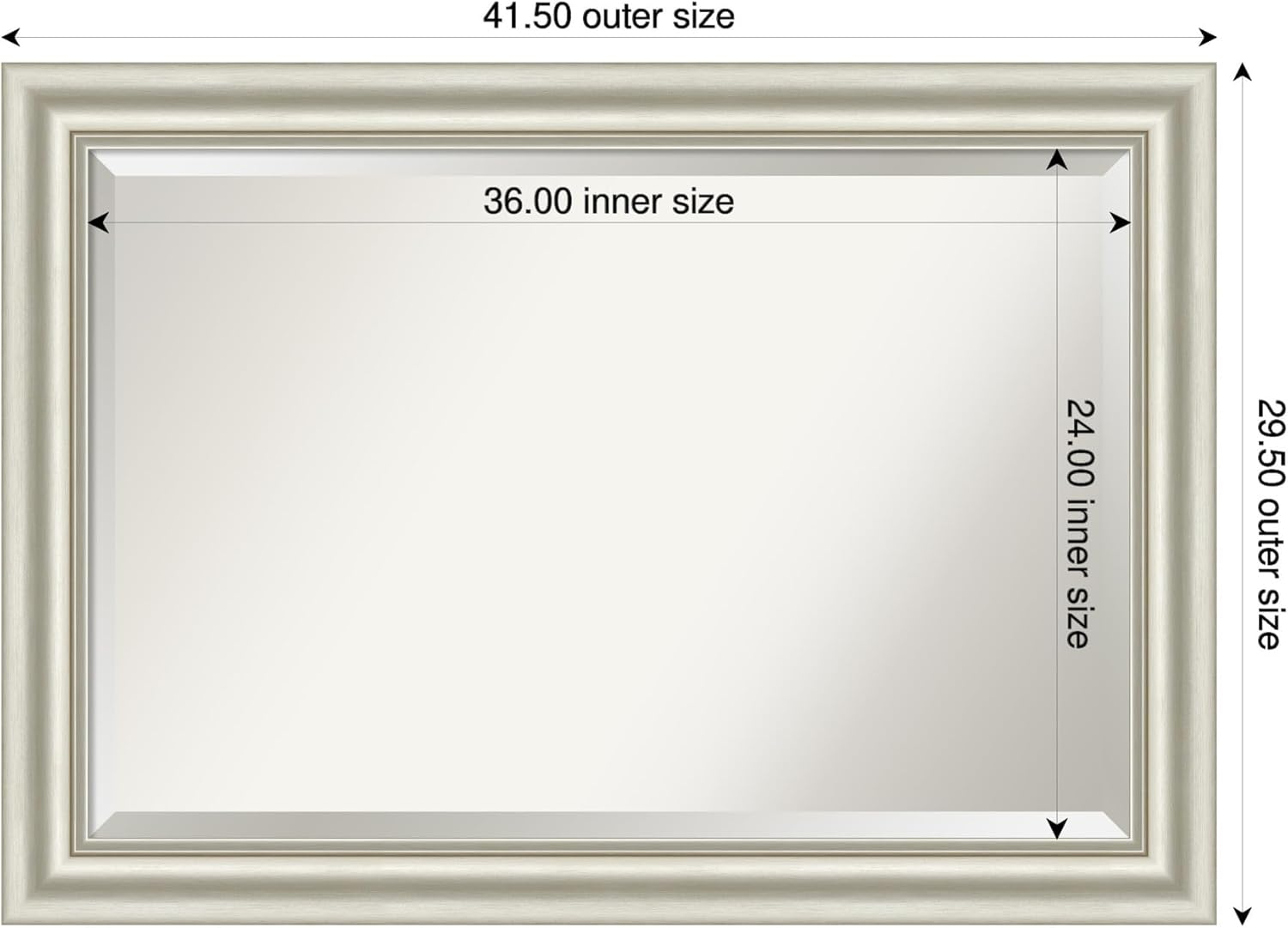 - MIRROR DETAILS: This mirror features premium glass for a clear, undistorted image and is finished with a beveled edge to give the glass a decorative touch. The overall size of this bathroom mirror measures exactly 41.5 x 29.5 inches, including the frame. Its reflective area measures 36 x 24 inches.