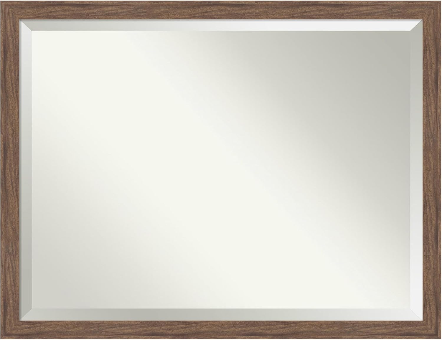 Amanti Art Brown Wall Mirror 33x43 Pia Medium Brown Narrow Rectangle Bathroom Mirror for Wall Decor Living Room, X-Large Casual Frame, Hangs Horizonally and Vertically, Bathroom Decor, Beveled Edge