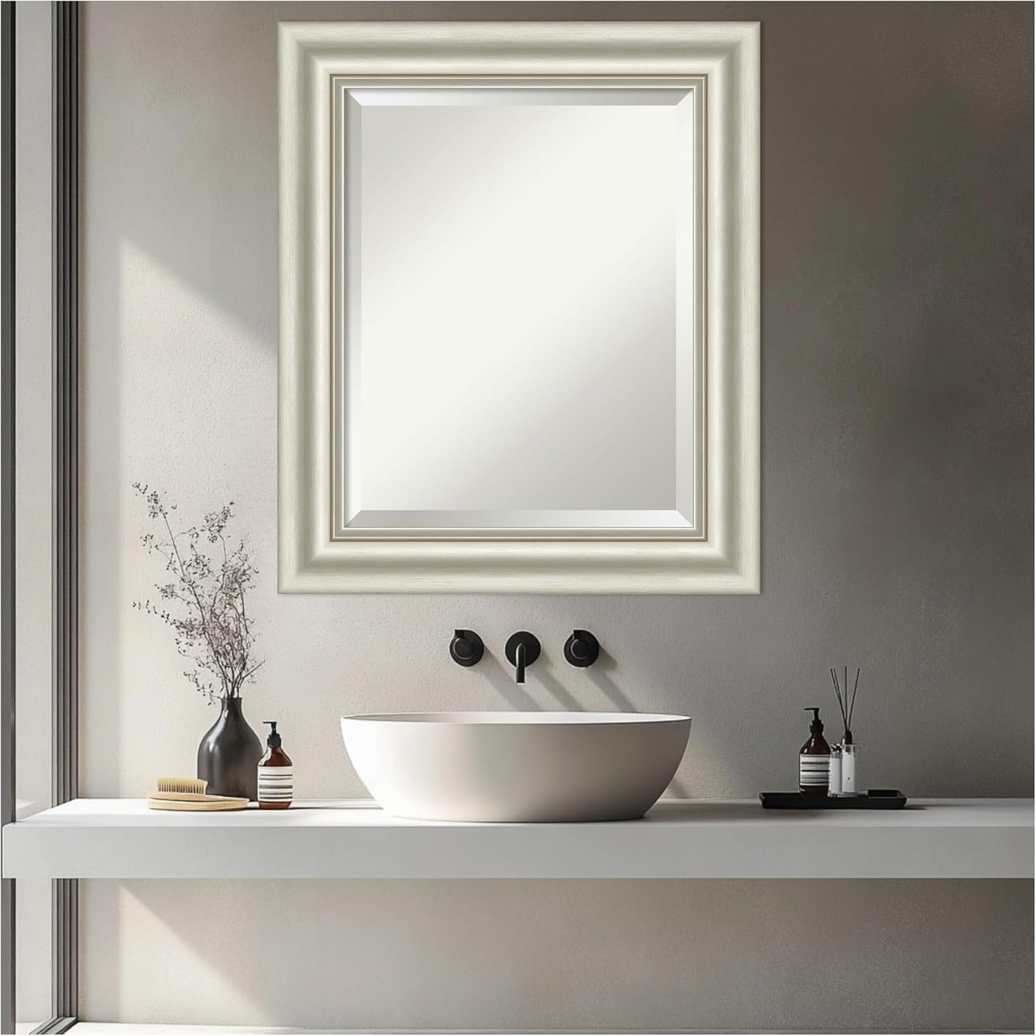 Amanti Art Bathroom Mirror for Over Sink, 26x22 Sophia Silver Rectangle Vanity Mirror, Small Traditional Frame, Hangs Horizonally and Vertically, Bathroom Wall Decor, Beveled Edge