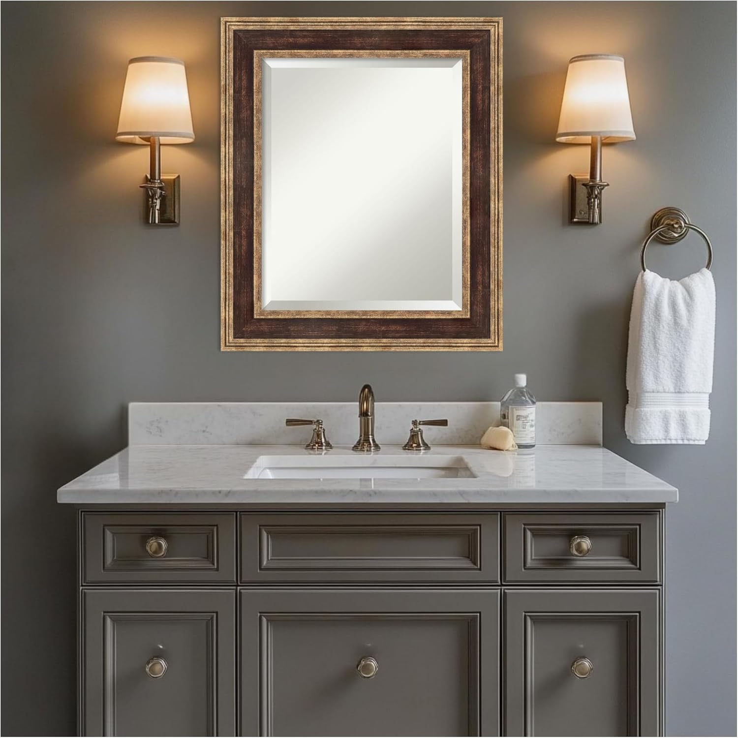Amanti Art Bronze Bathroom Mirror for Over Sink, 26x22 Ridge Light Bronze Rectangle Vanity Mirror, Small Traditional Frame, Hangs Horizonally and Vertically, Bathroom Wall Decor, Beveled Edge