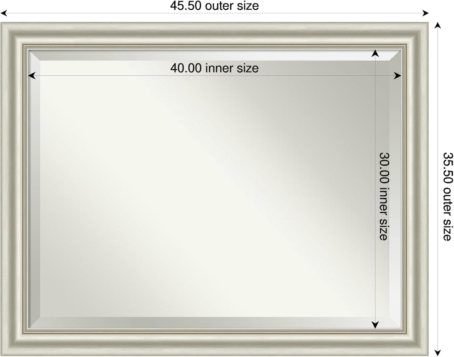 - MIRROR DETAILS: This mirror features premium glass for a clear, undistorted image and is finished with a beveled edge to give the glass a decorative touch. The overall size of this bathroom mirror measures exactly 45.5 x 35.5 inches, including the frame. Its reflective area measures 40 x 30 inches.