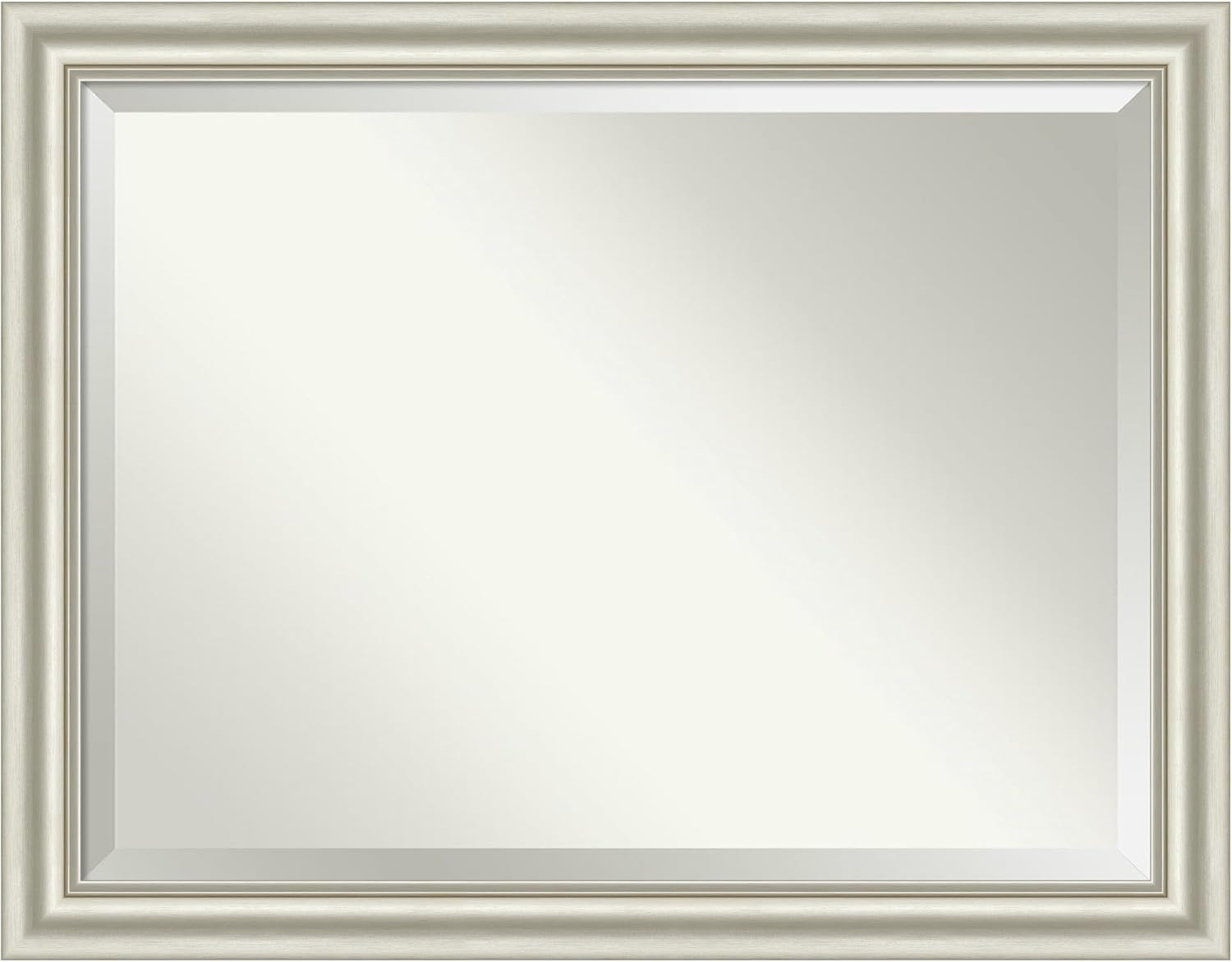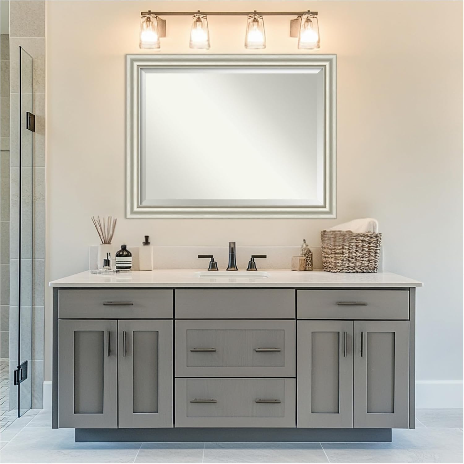 Amanti Art Bathroom Mirror for Over Sink, 36x46 Sophia Silver Rectangle Vanity Mirror, X-Large Traditional Frame, Hangs Horizonally and Vertically, Bathroom Wall Decor, Beveled Edge