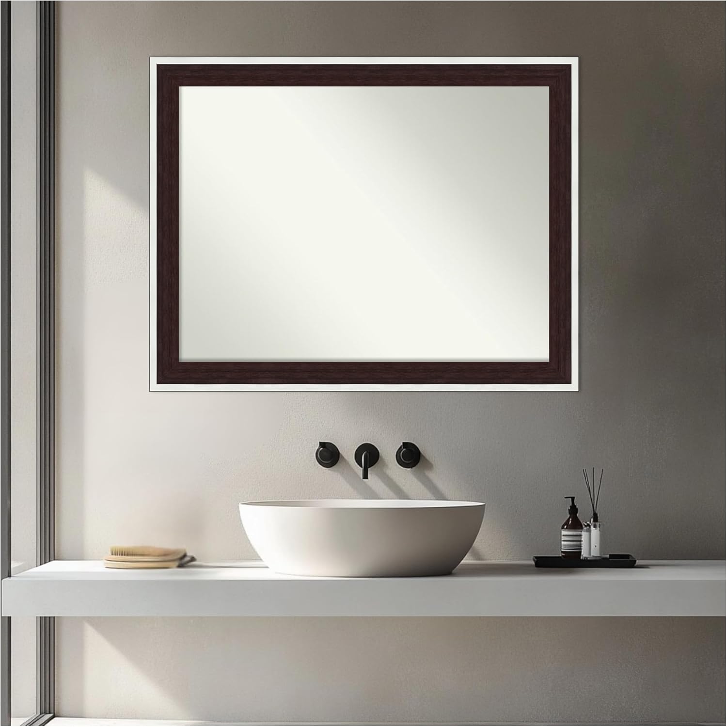 Amanti Art Bathroom Mirror for Over Sink, 27x21 Maya Espresso Silver Rectangle Vanity Mirror, Medium Modern Contemporary Frame, Hangs Horizonally and Vertically, Bathroom Wall Decor, Non-Beveled Edge