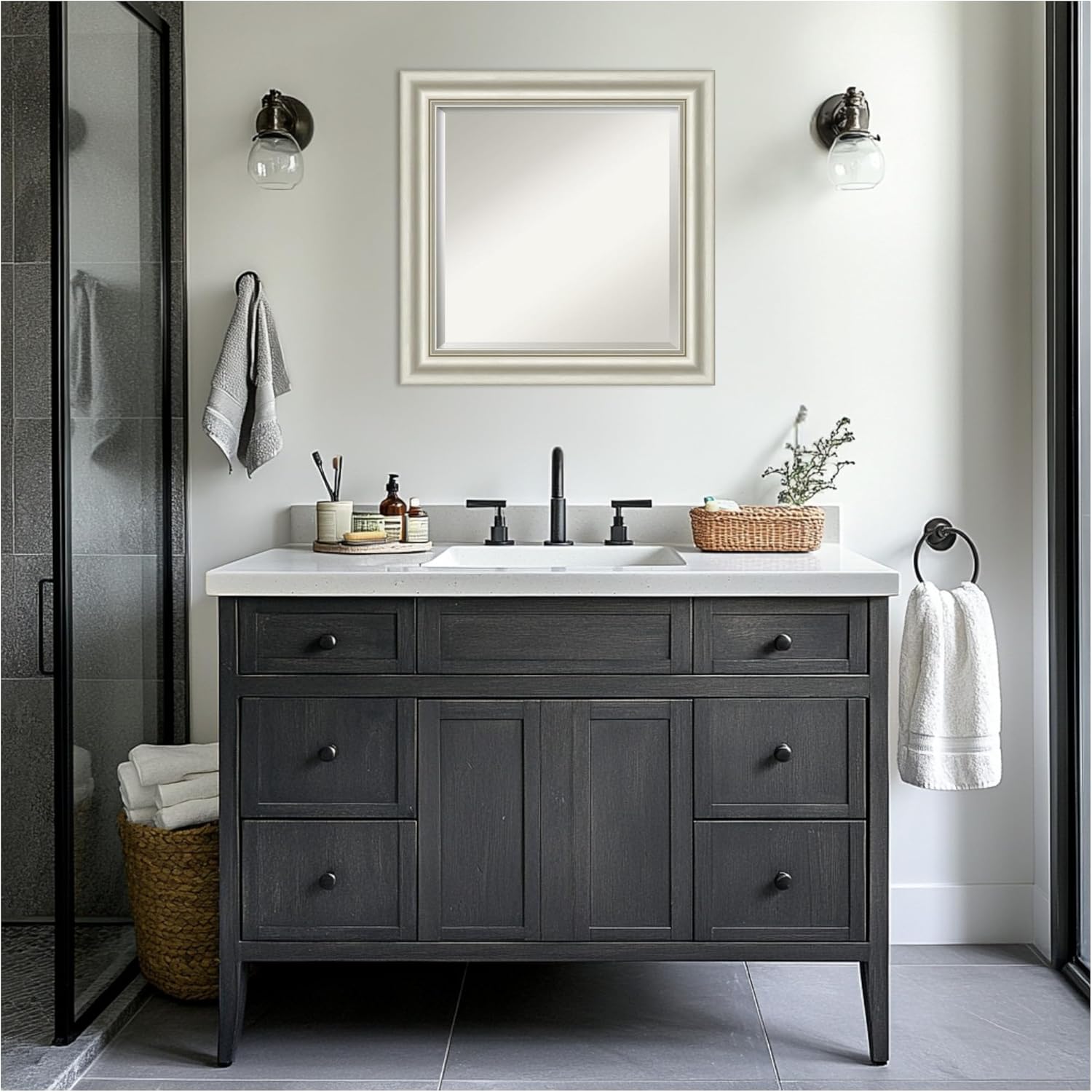 Amanti Art Bathroom Mirror for Over Sink, 26x26 Sophia Silver Square Vanity Mirror, Medium Traditional Frame, Hangs Horizonally and Vertically, Bathroom Wall Decor, Beveled Edge