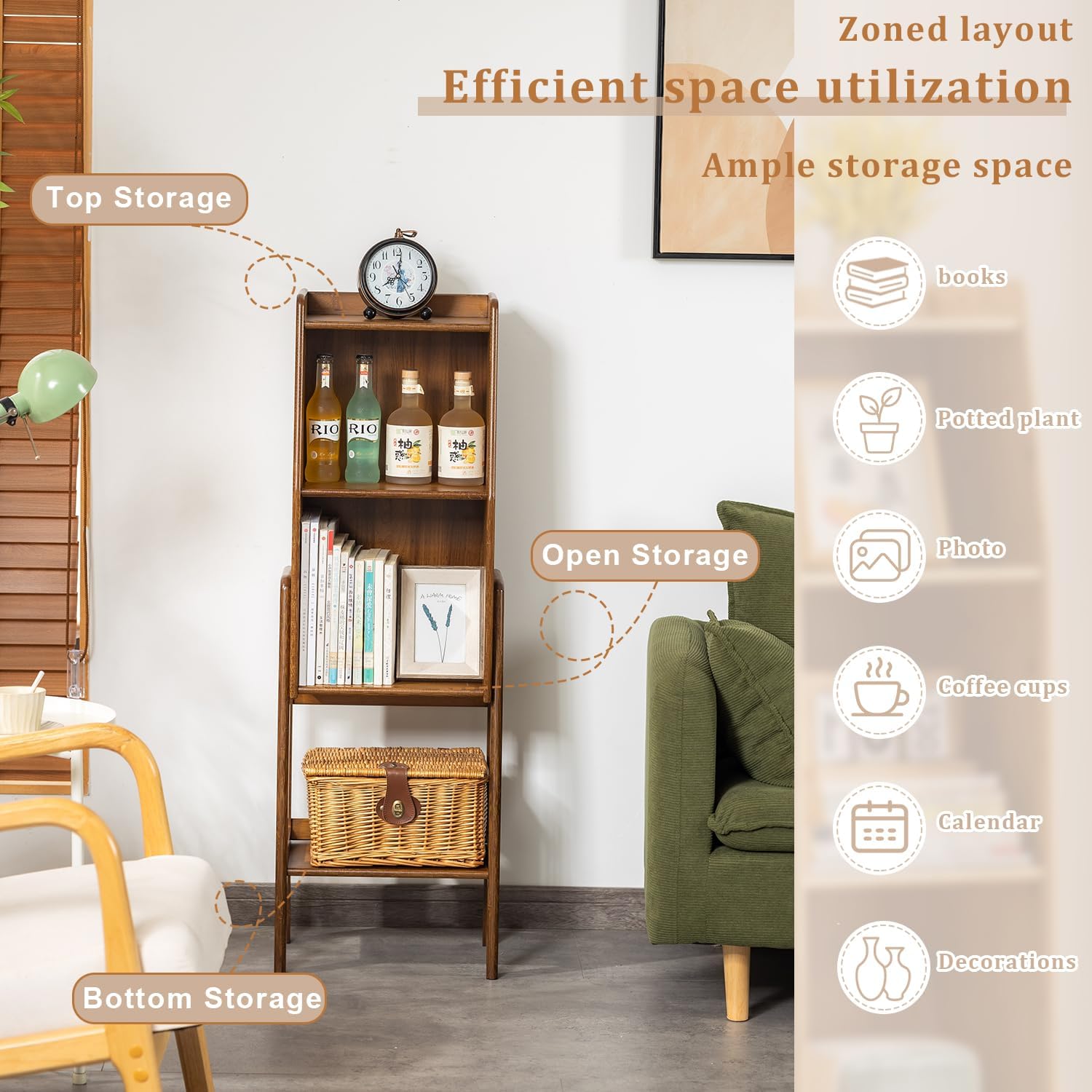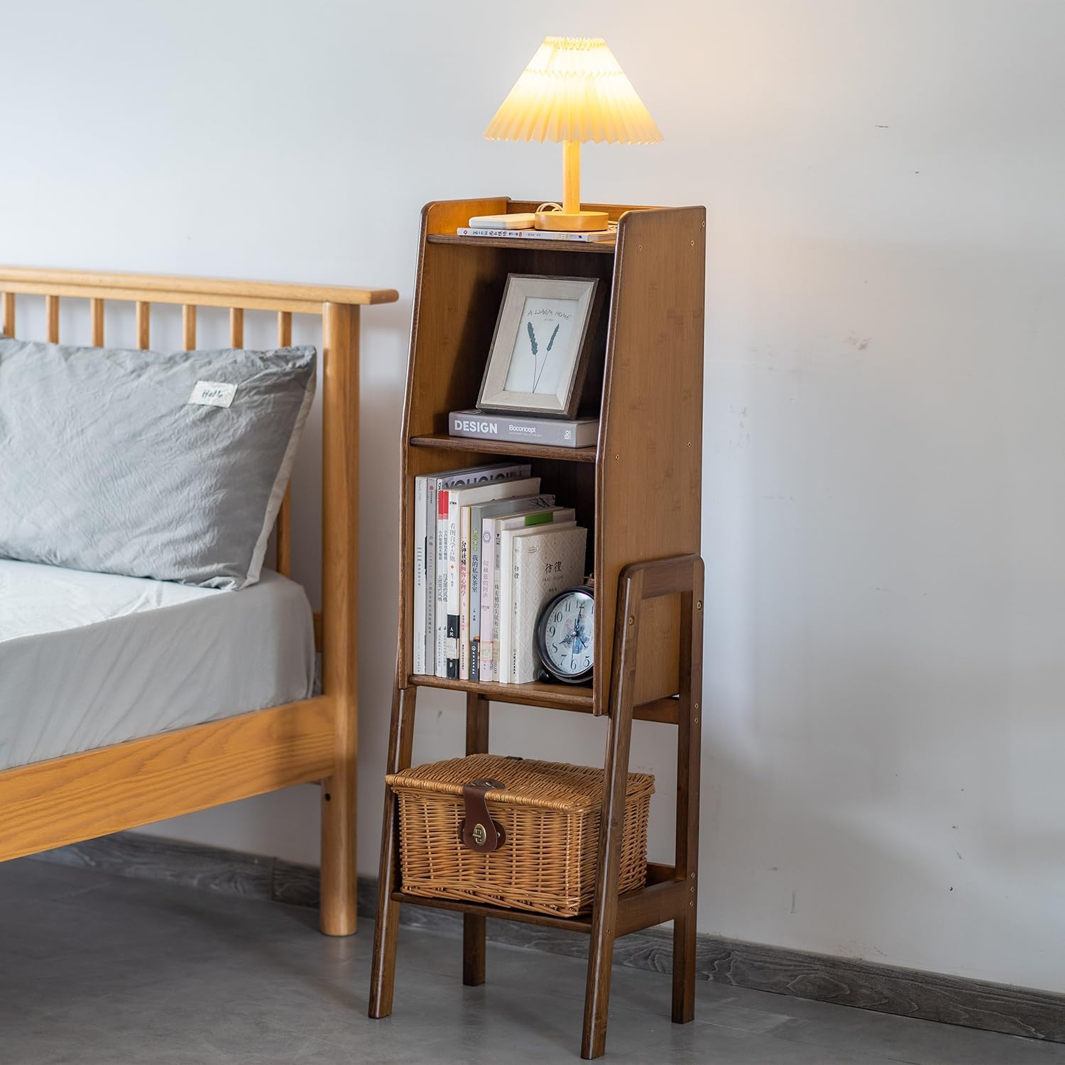 - 【Natural & Durable】 Made from bamboo and solid wood, this bookcase is both eco-friendly and built to last. Its natural look fits easily into any room style.