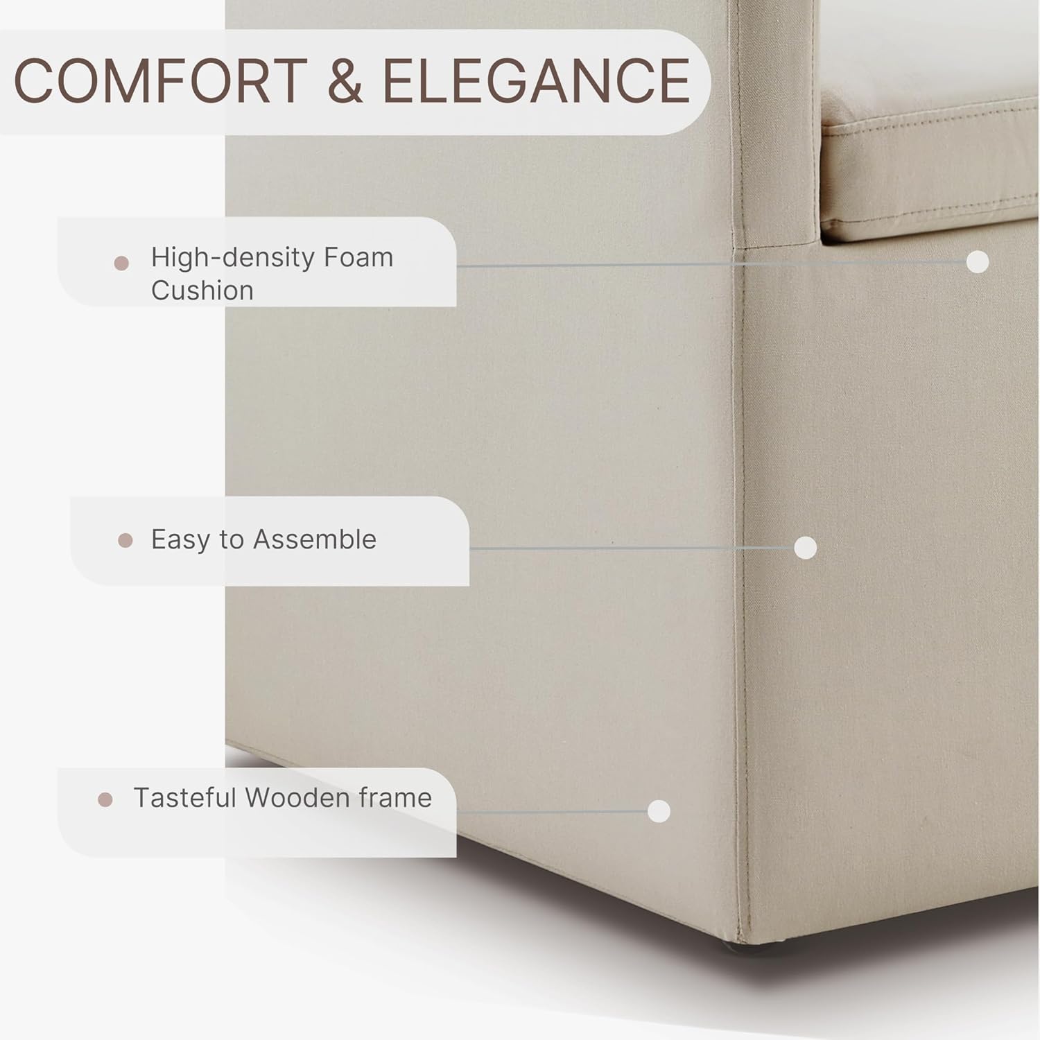 Upholstered Dining Chairs with Casters Washable Cover Side Deskchair with Rollers for Diningroom, Living Room, Flax Beige, 1 Box