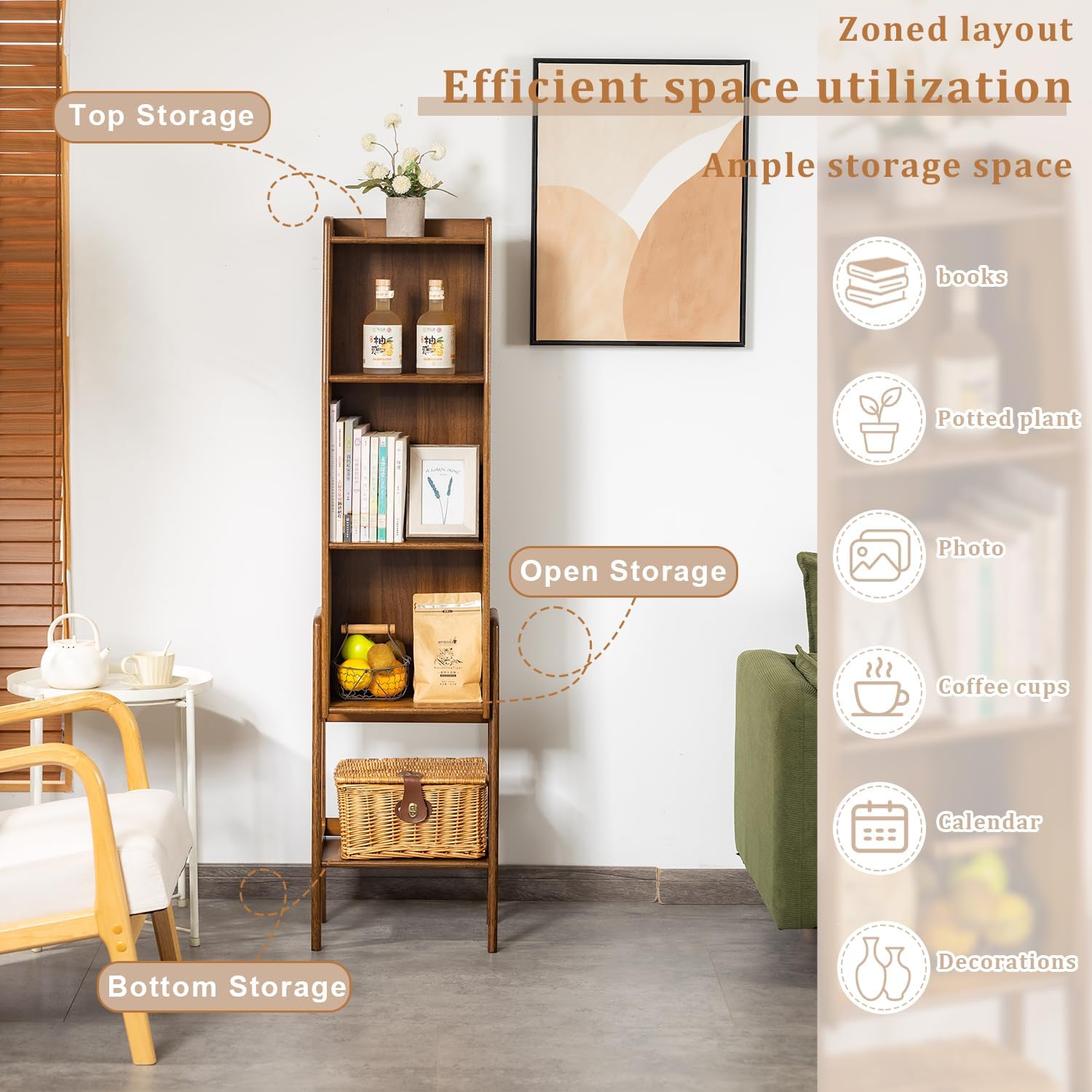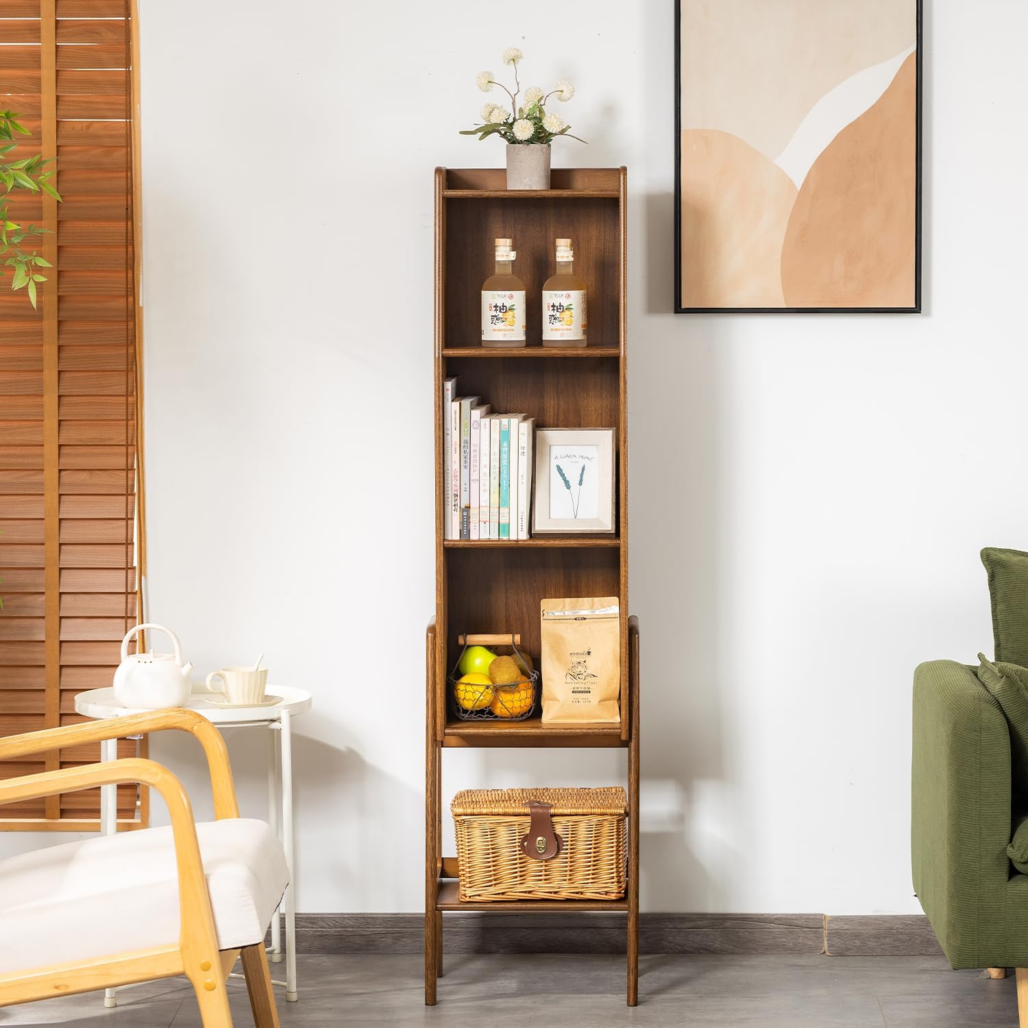 - 【Natural & Durable】 Made from bamboo and solid wood, this bookcase is both eco-friendly and built to last. Its natural look fits easily into any room style.