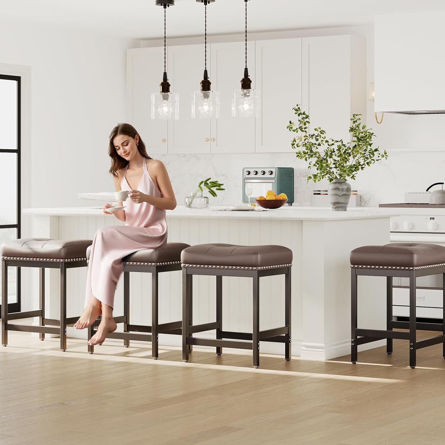 - 3️⃣ Ideal Counter Height for Everyday Use With a 24.4 inch seat height, our counter height stools set of 4 fits perfectly under 35 to 40 inch kitchen counters, islands, or breakfast bars. Whether enjoying your morning coffee, casual meals, or entertaining guests, these stools are practical, stylish, and comfortable for daily use.