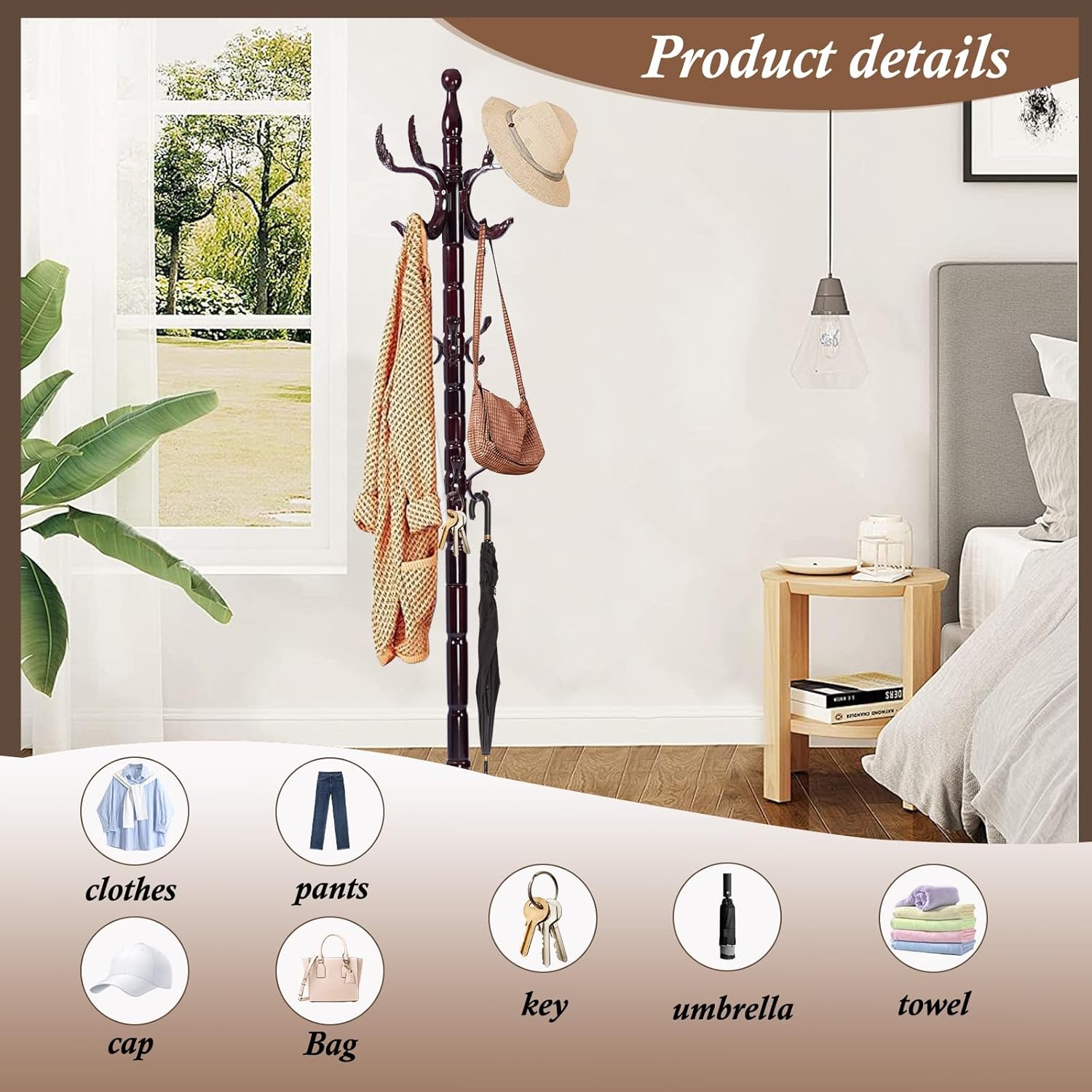 - SPACE-SAVING: The wooden coat hanger stand is designed a simple structure. The space occupied is very small. The three-layer hook meets daily needs, and the lower hook is very suitable for children to hang their backpacks and coats. The coat rack can be placed in the hallway, living room, office and any corner you need