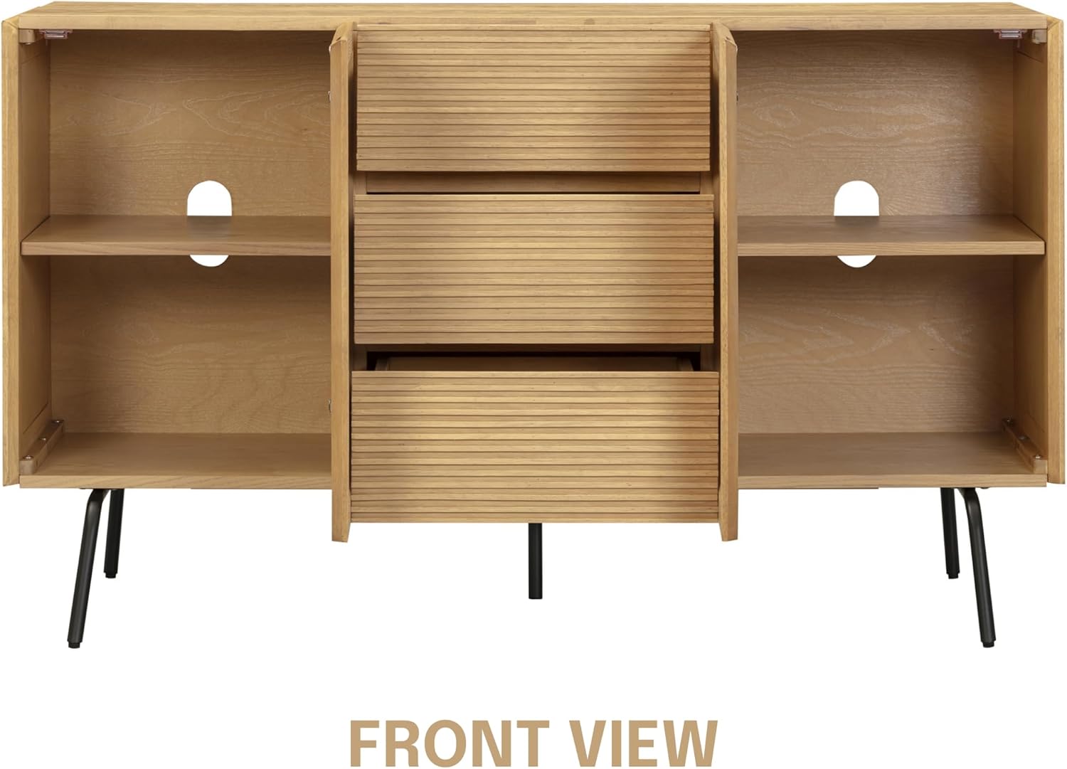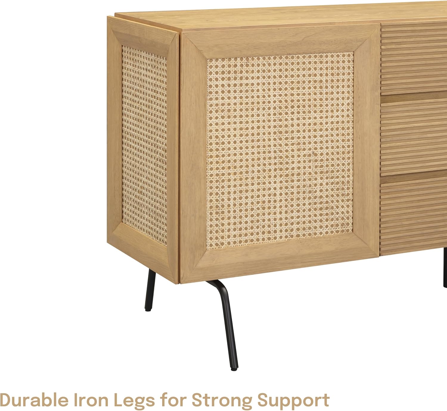 - AMPLE STORAGE SPACE – With two rattan-paneled cabinet doors and three spacious drawers, this sideboard offers the perfect balance between concealed storage and easy access to everyday essentials.