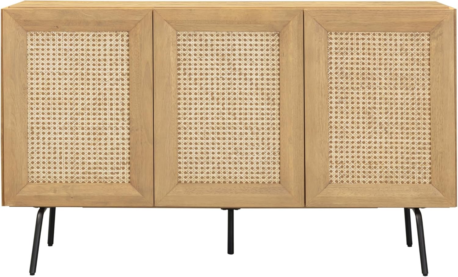 NTC MOSSIC Modern Sideboard with 3 Doors, Natural Rattan Storage Cabinet, Buffet with Metal Legs, Boho Accent Cabinet for Living Room, and Entryway, Effortless Assembly, Sand