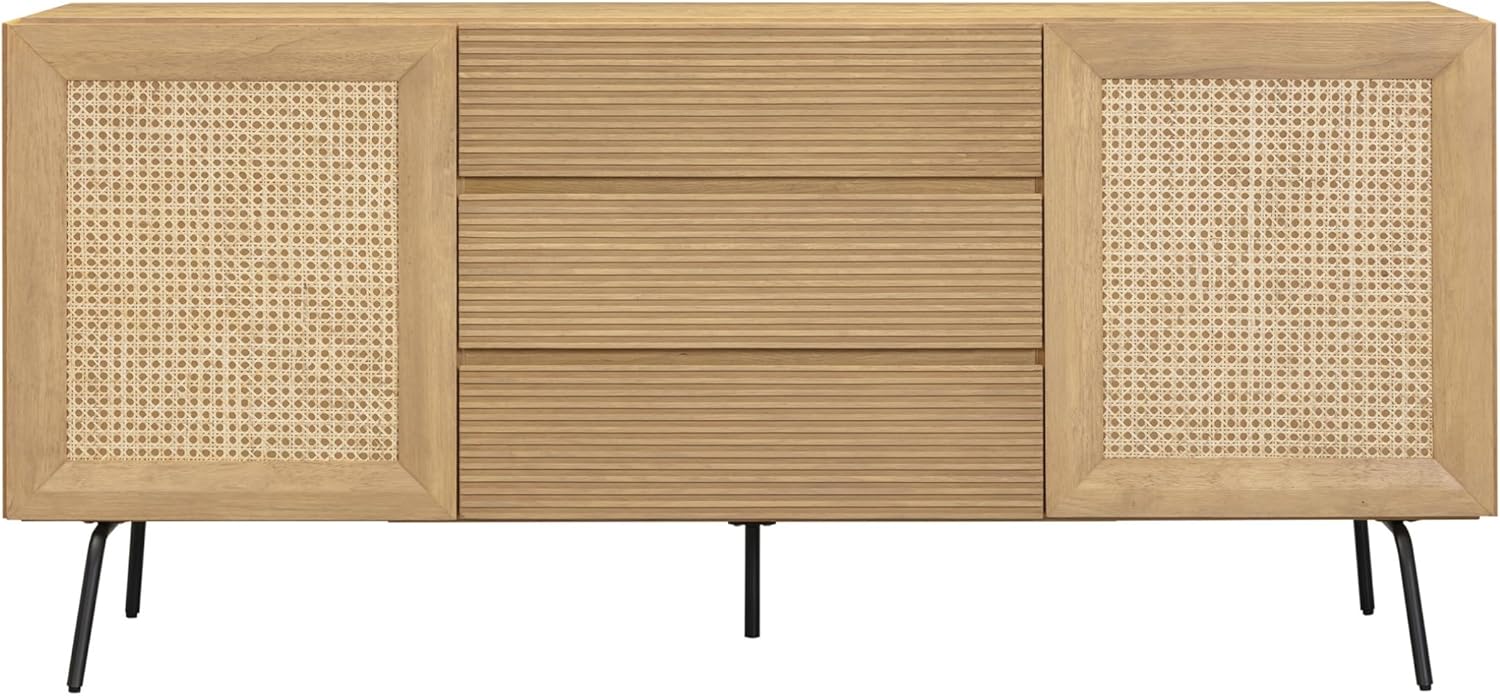 - TIMELESS MODERN DESIGN – A sleek black wood finish combined with natural rattan panels creates a stunning blend of contemporary and rustic aesthetics, making this sideboard a stylish focal point in any space.