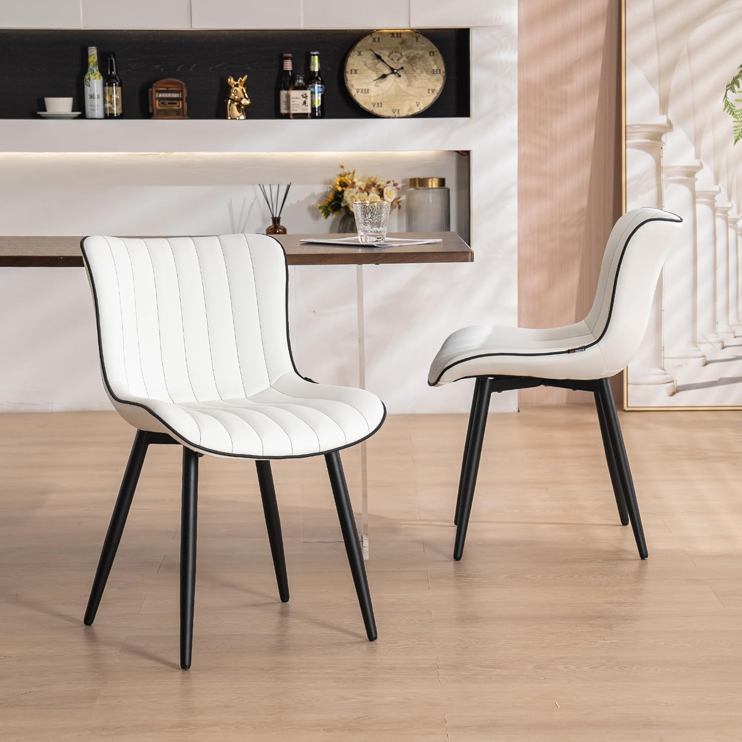 - 【Color-Matched PU Leather & Painted Metal Legs】These stylish dining chairs combine a sleek look with easy care. Waterproof and scratch-resistant, they simplify cleaning—just wipe with a damp or vacuum. Minimalist design chair is ideal for modern homes