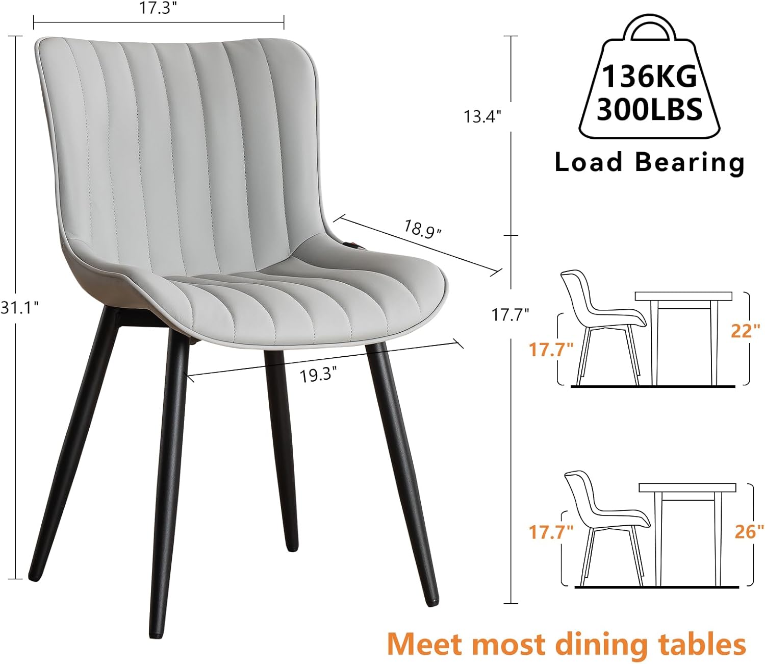 - 【Proper Kitchen Chair Size】Seat height 17.7", Increased seat width 19.3", seat depth 18.9", back width 17.3", back height 13.4", total height 31.1". Package size: 27.56" W x 13.98" D x 19.09" H. Recommended maximum load is 300 LBS