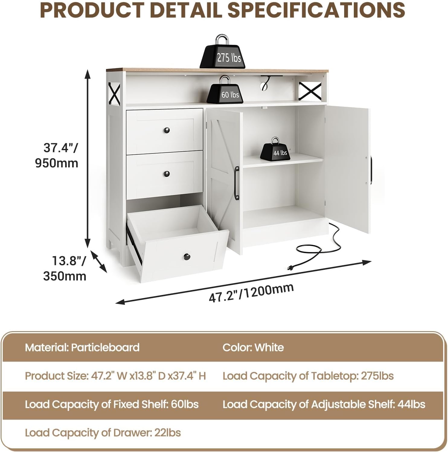 - [Charming Farmhouse Design] This 47 inch kitchen Buffet Cabinet features antique wooden finishes, stylish barn doors and decorative metal beams, adding a rustic touch to any living room or dining area while providing functional storage
