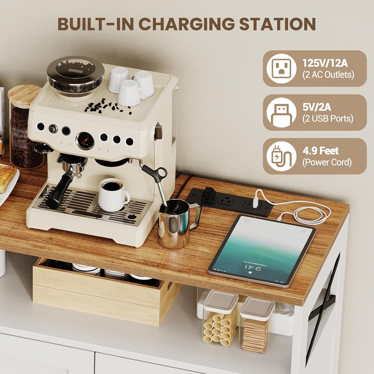 - [Premium Structure] This coffee bar cabinet is made of high-quality medium-density fiberboard, which is sturdy and durable. It combines superior materials with thoughtful design, creating a functional and fashionable addition to your home decoration