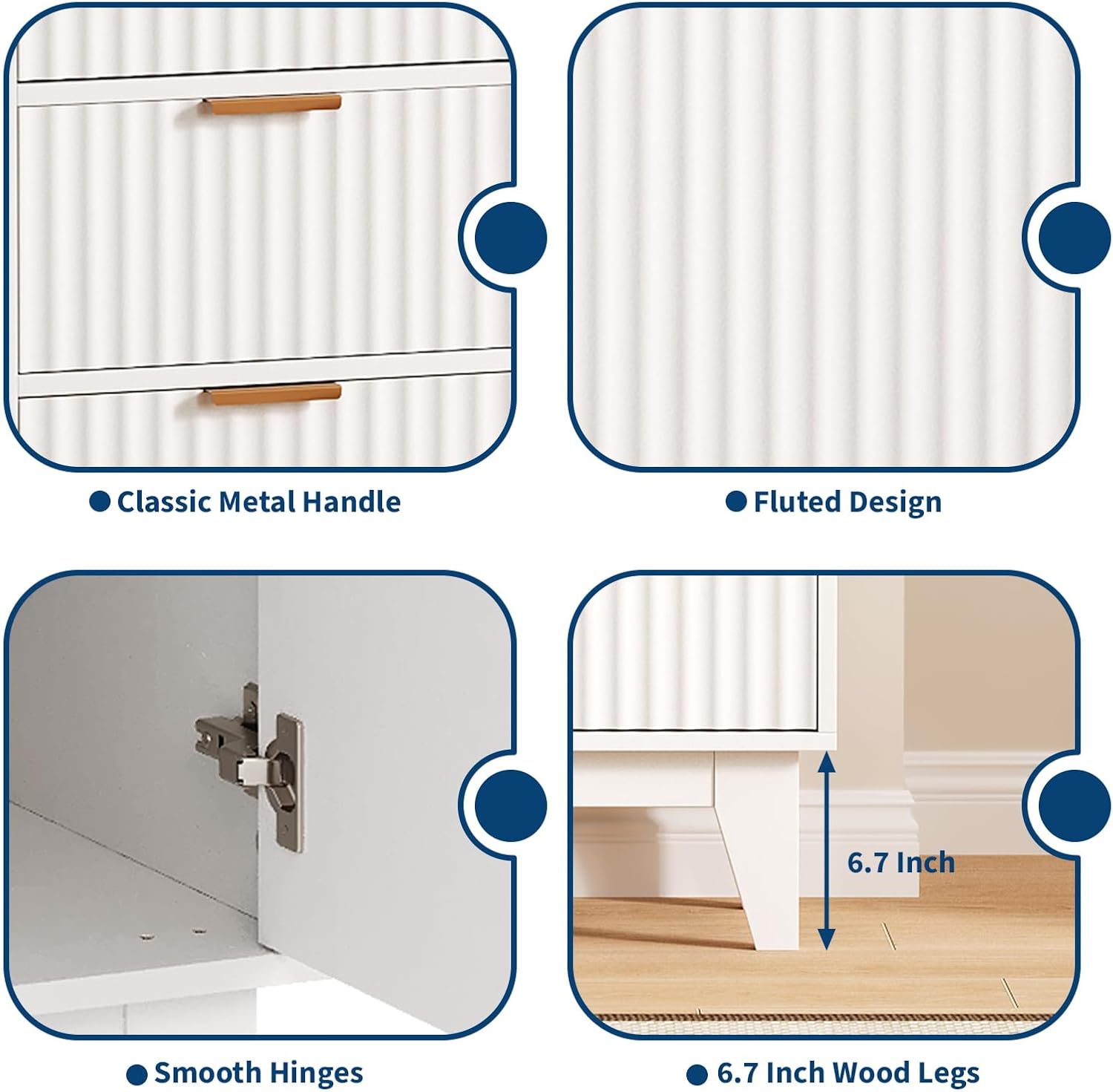 - 【Sculptural Fluted Elegance】-Waveform fluted panels create dynamic light play, enhanced by matte-black metal handles. This timeless design bridges mid-century charm and contemporary minimalism, elevating living rooms, dining spaces, and entryways with tactile sophistication.