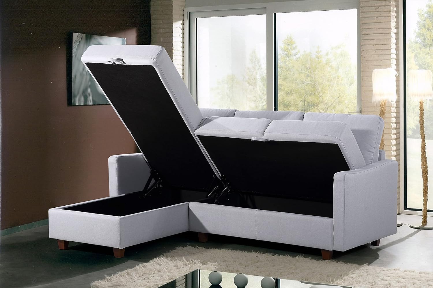 - MULTIFUNCTIONAL – This modern sectional is a perfect addition to your living room, home office or in college dorm, with its flexible functionality as a regular sofa with a hidden storage space for unnecessary items.