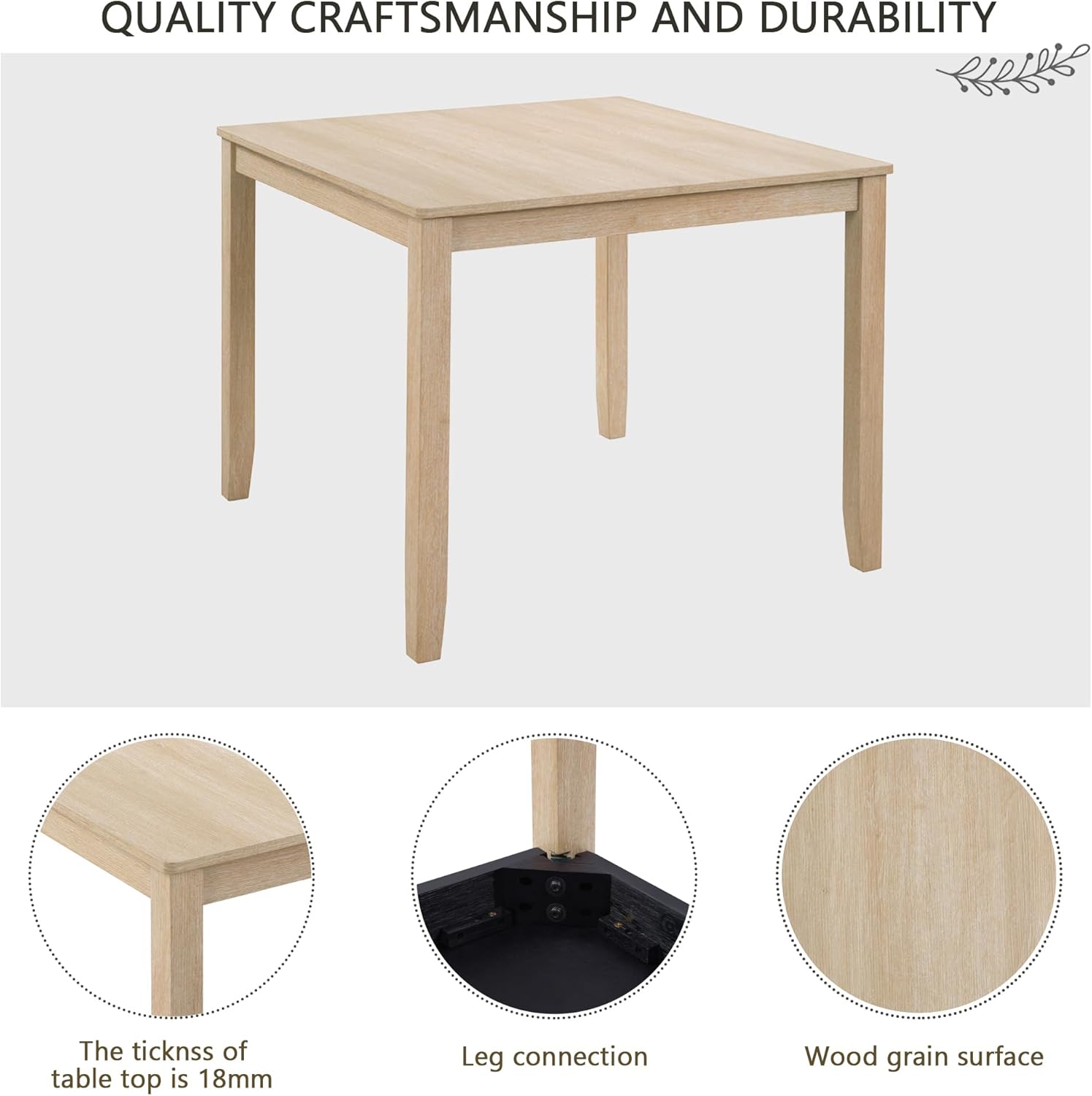 Ball & Cast 5 Piece Dining Table Set with 4 Upholstered Chairs,Wooden Living Room Furniture W/ 34.5" Square Kitchen Desk & Backrest Chair,for Small Space,Dining Room,Liaght Oak & Beige