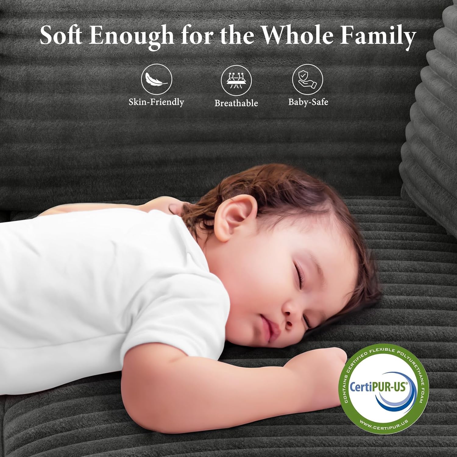 - Available in 6 Color Options: Two premium fabrics include plush corduroy couch and luxurious chenille couch—both offering exceptional comfort, lasting durability, and easy upkeep. These skin-friendly, pet-resistant materials withstand scratching while maintaining their softness, perfect for families with children and pets. For added convenience, the removable throw pillow covers and back cushion covers are machine-washable, effortlessly blending style with practicality—ideal for anyone seeking a fresh, low-maintenance sectional couches for living room