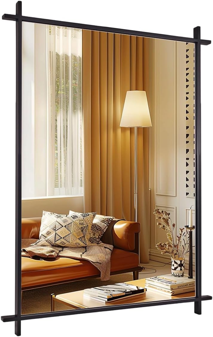- 【Outstanding Material】: Crafted with a sturdy SUS304 frame, this 30x40 inch cross corner mirror is rustproof, durable, and built to last. This minimalist mirror features no-distortion HD glass with a 9mm MDF backboard for shatter-proofing and added strength. Solid and of premium quality, unique vintage mirror is a perfect addition to your home. ANDY STAR would be responsible for any mirror damaged or defective on arrival