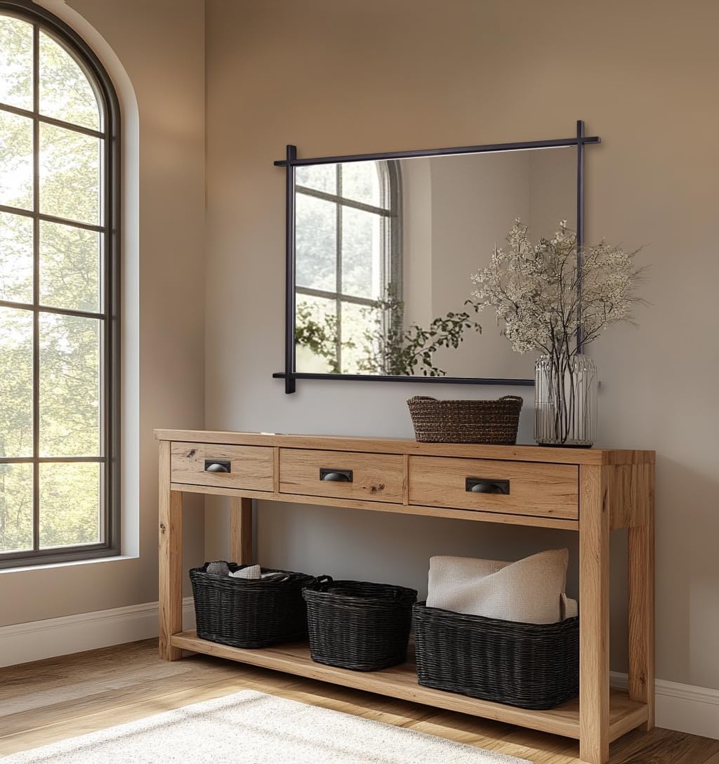 Andy Star 30x40 Inch Black Bathroom Vanity Mirror, Large Vintage Cross Corner Mirror Unique Industrial Minimalist for Home Decor in 1’’ Stainless Steel Metal Frame Wall Mounted Vertical/Horizontal