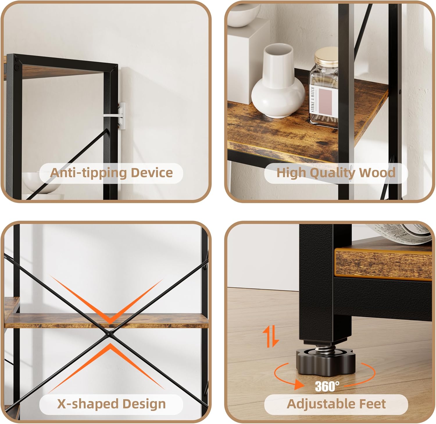 - Sturdy Vintage Industrial Style Bookshelf: This corner bookshelf features an L-shaped design that seamlessly fits into any 90-degree corner. A specially designed X-shaped crossbar on the back enhances stability and durability. The anti-tip kit and adjustable feet work together to prevent the bookcase from tipping or wobbling on uneven surfaces, ensuring your family's safety and protecting floors from scratches.