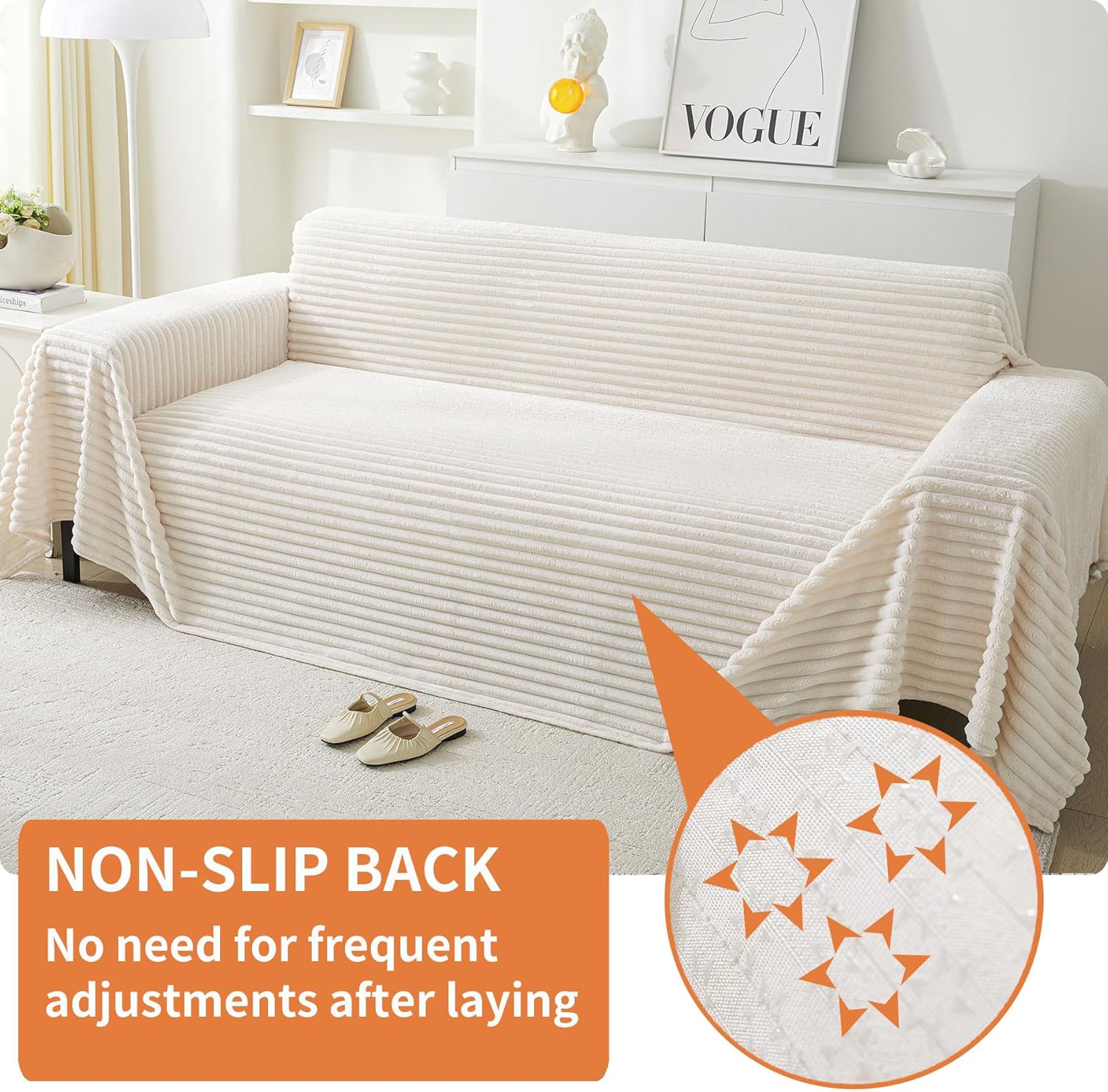 - EXCELLENT ANTI-SLIP: Our non-slip couch cover blanket are made with non-slip granule technology on the reverse side, which allows sofa cover blanket to fit snugly on the surface of the sofa and fit the sofa perfectly without shifting due to people or pets sitting or lying down. Once laid, our couch blanket cover do not need to be adjusted frequently, so that every moment of your home life is immersed in convenience and comfort.