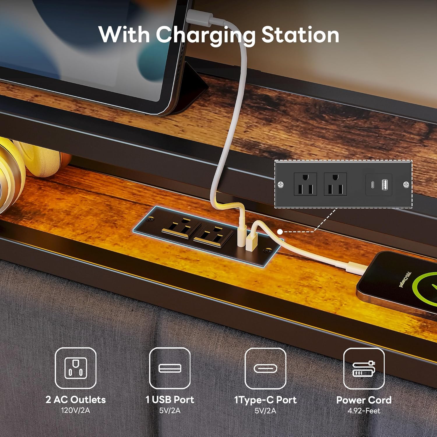 - Smart Charging and Storage Headboard: Built-in USB-A/C ports and AC outlets keep devices charged. Includes a handy shelf for books and electronics—convenient bedside access