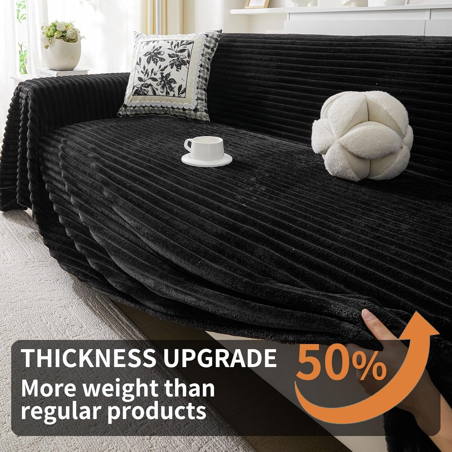 HAOMAIJIA Faux Fur Sofa Covers Couch Covers for 3 Cushion Couch Sofa Pet Friendly Soft Non Slip Couch Cover for Dogs Washable Sectional Couch Covers L Shape Furniture Protector (Black, 71"x150")