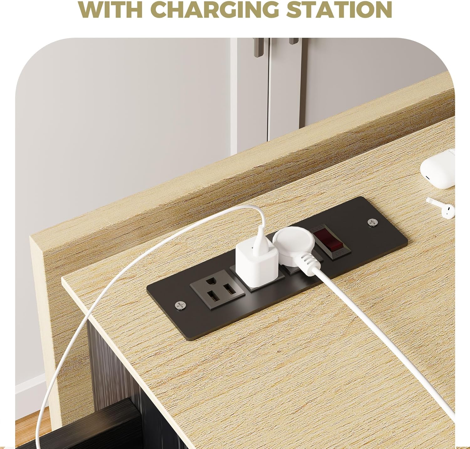 - Kitchen Cabinet with Charging Station: Integrated power outlets transform this kitchen island into a charging hub. Safely plug in mixers or other Kitchen appliances while prepping meals on the island table
