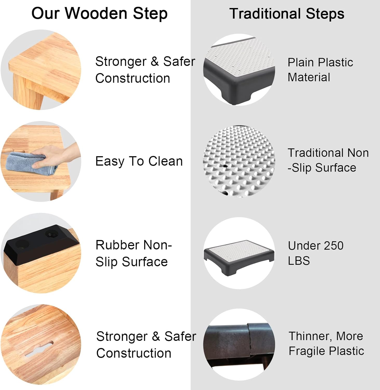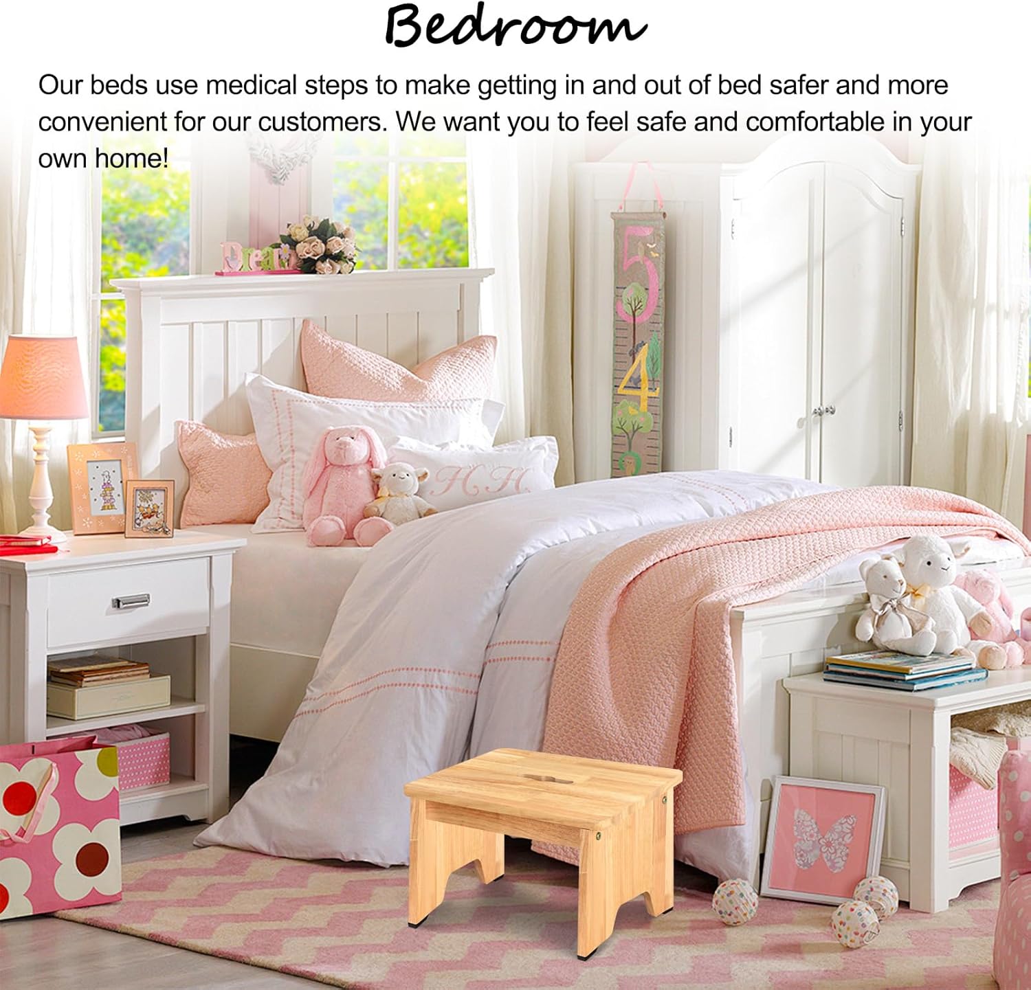 - 【Heavy Duty and Sturdy Construction】Wooden step stool is made of 1-inch solid wood, which is waterproof, easy to clean, scratch-resistant and eco-friendly. Bed stepping stool with artisanal wood,natural and environmentally friendly materials is extremely strong and rust-resistant, can withstand up to 550 pounds, ensuring years of trouble-free use. Step stool for bed has a sturdy and durable construction, providing a safe choice for your family and ensuring your peace of mind