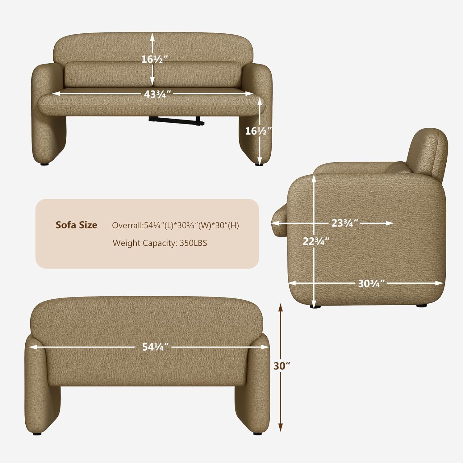Furnimart Modern Loveseat Sofa, 54" 2-Seater Boucle Sofa, Comfy Upholstered Minimalist Couch, Small Couches for Small Spaces, Apartment, Office, Living Room, Bedroom, Dorm, Chenille Brown