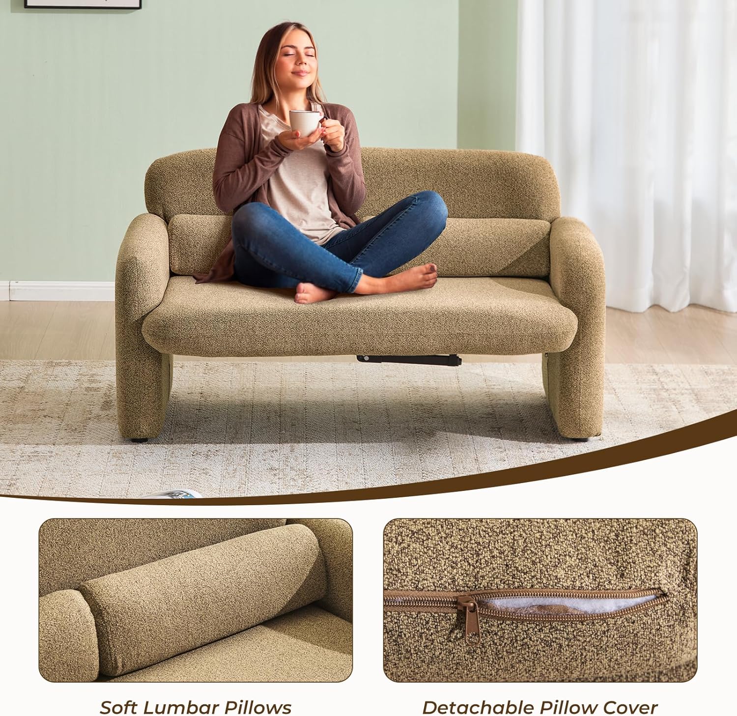 - PREMIUM CHENILLE FABRIC - PET-FRIENDLY & WASHABLE: Dressed in ultra-soft, skin-friendly chenille that resists pilling and stains. Two detachable lumbar pillow covers of boucle sofa are machine washable (iron recommended). Ideal as a pet friendly couch or for families needing durable living room furniture.