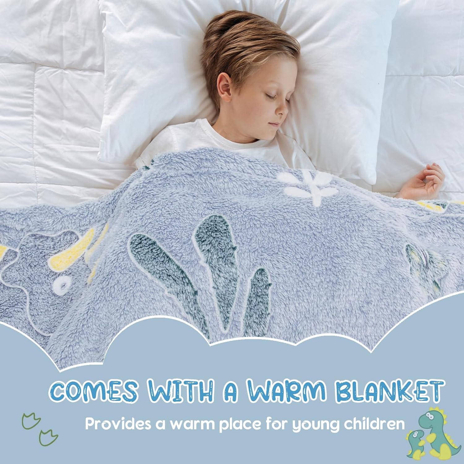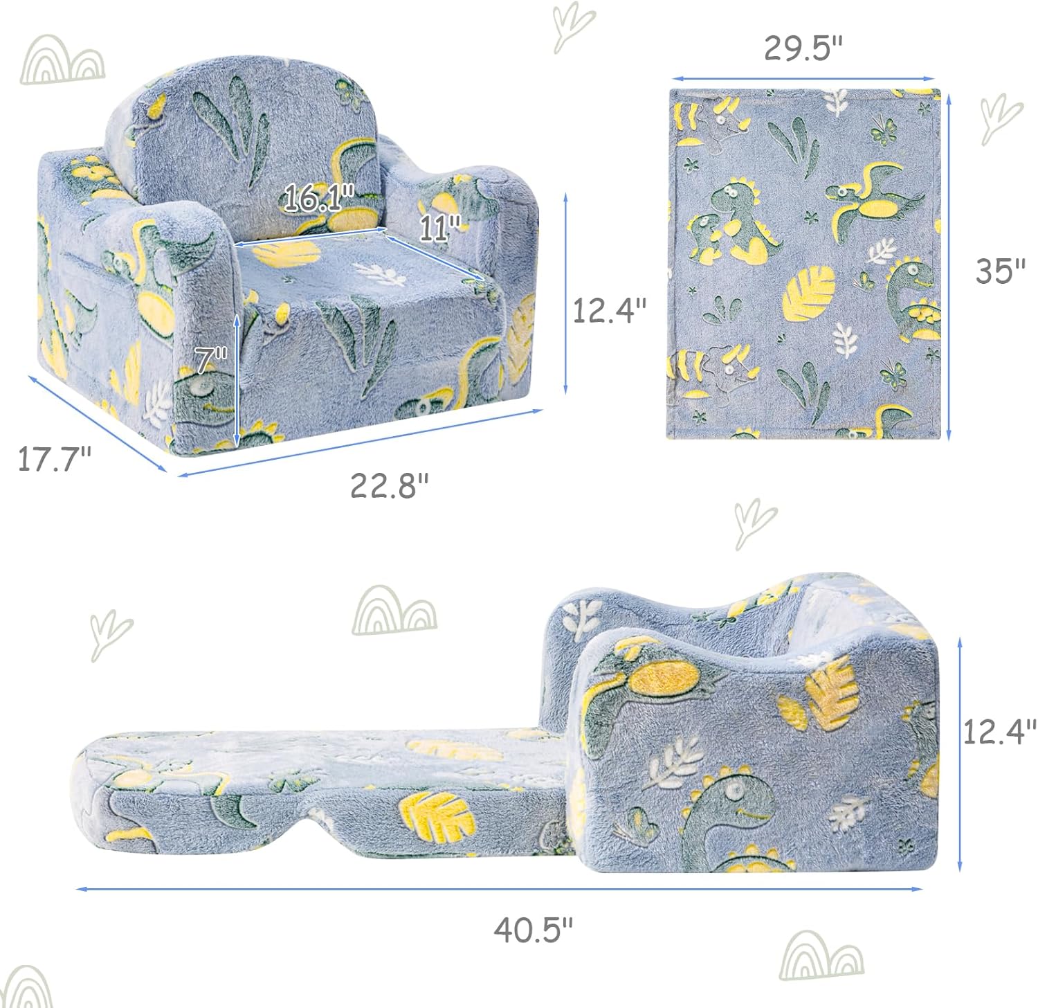 Comfy Toddler Chair and Couch for Kids with Blanket,2-in-1 Soft Plush Fold Out Toddler Couch for Girls and Boys,Convertible Sofa to Lounger for Playroom, Dinosaur