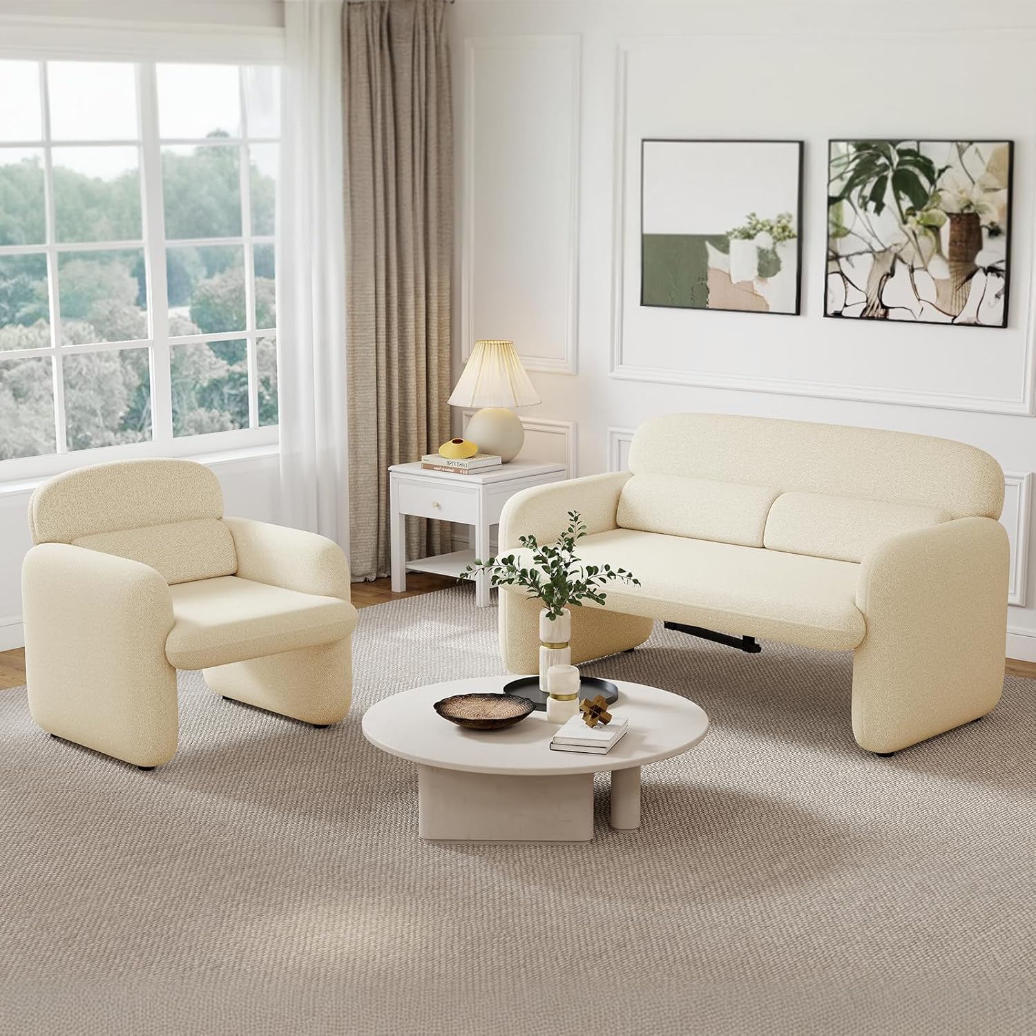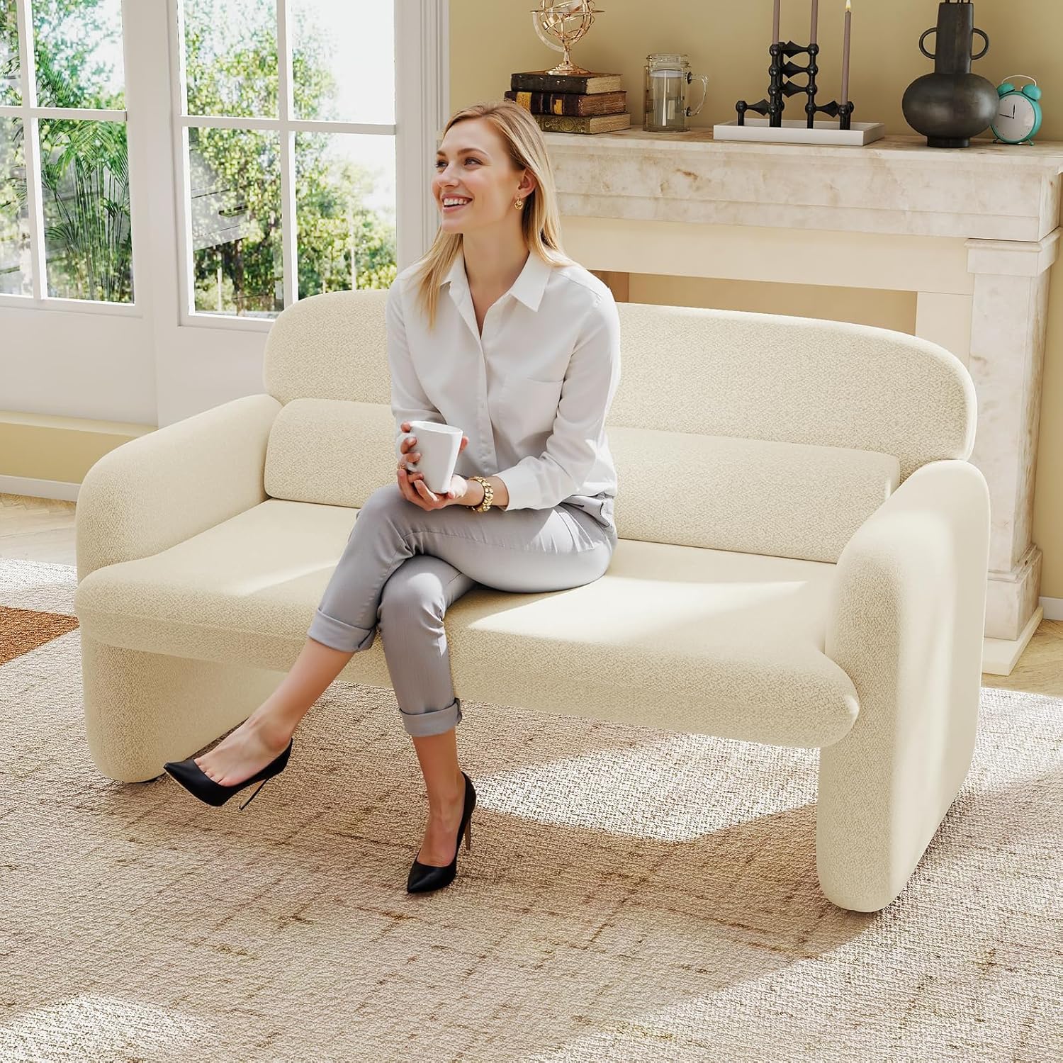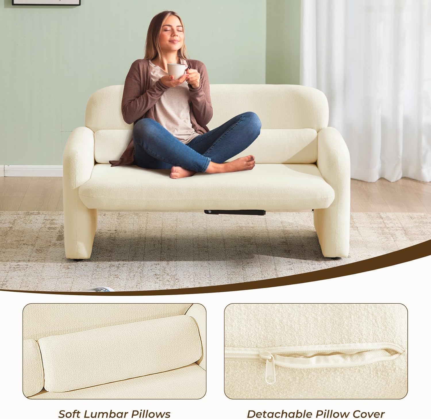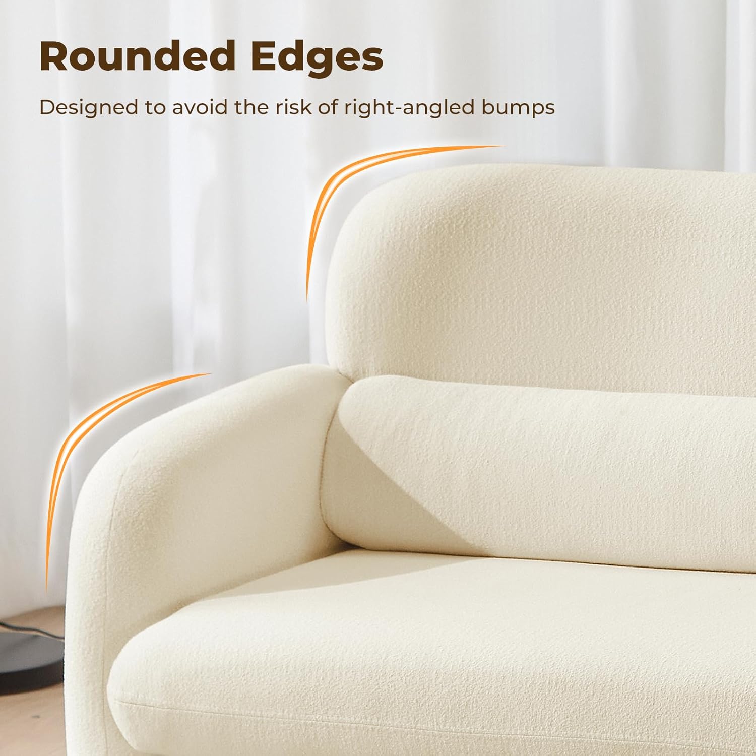 - ERGONOMIC CLOUD COMFORT WITH LUMBAR SUPPORT: This modern white loveseat features plush high-density foam cushions and two lumbar pillows for all-day comfort. The ergonomic design with rounded edges provides body-contouring support while preventing accidental bumps. Perfect as a comfy couch for small spaces or deep seat sofa for lounging.