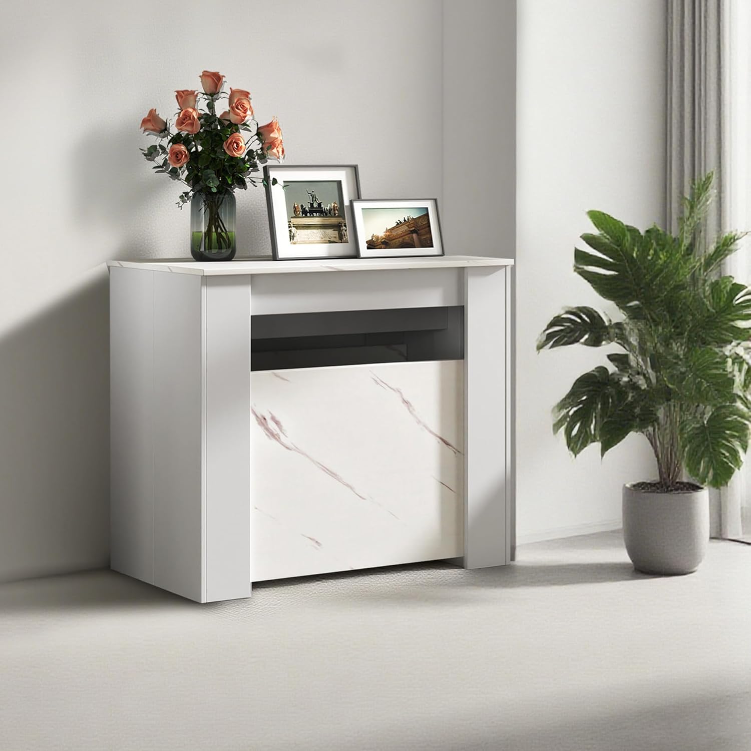 - 【Multi-Functional Design】Use as a narrow entryway table, home office desk, or spacious dining table. The hidden extension leaves store neatly underneath when not in use.
