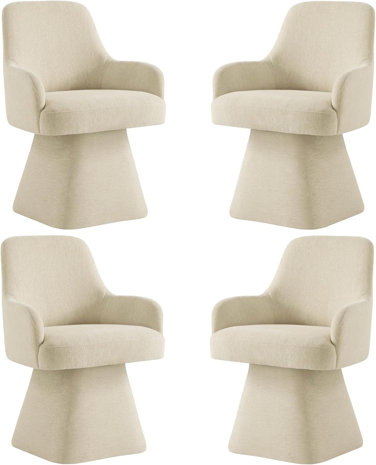 Swivel Dining Chairs Set of 4, Mid Century Modern Chairs Fabric Upholstered Armchair with Armrest & Ergonomic Backrest for Dining Room, Kitchen, Bedroom, Living Room, Sand, 4 Boxs